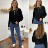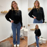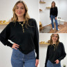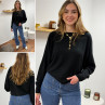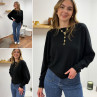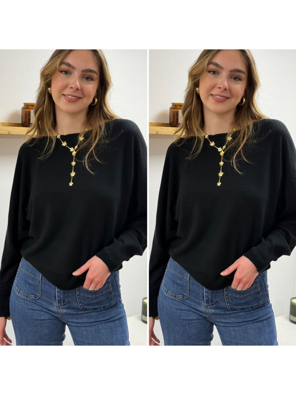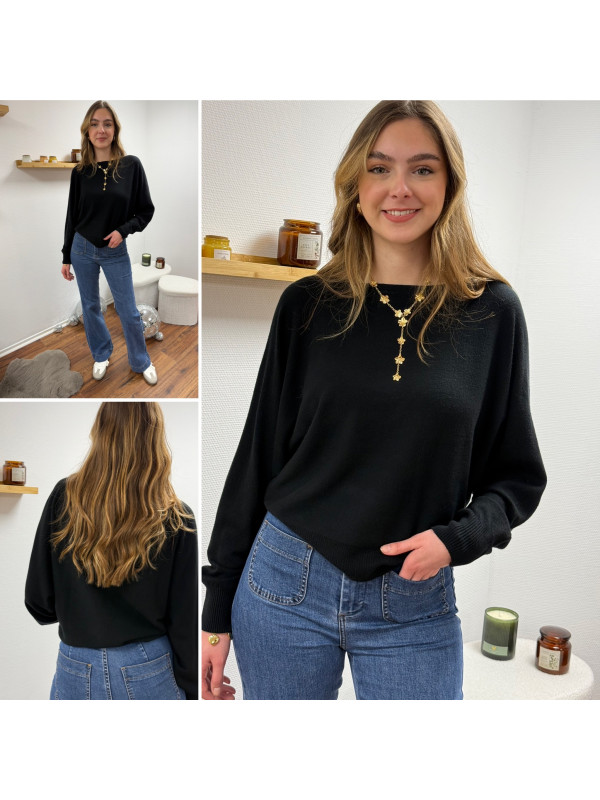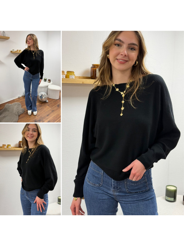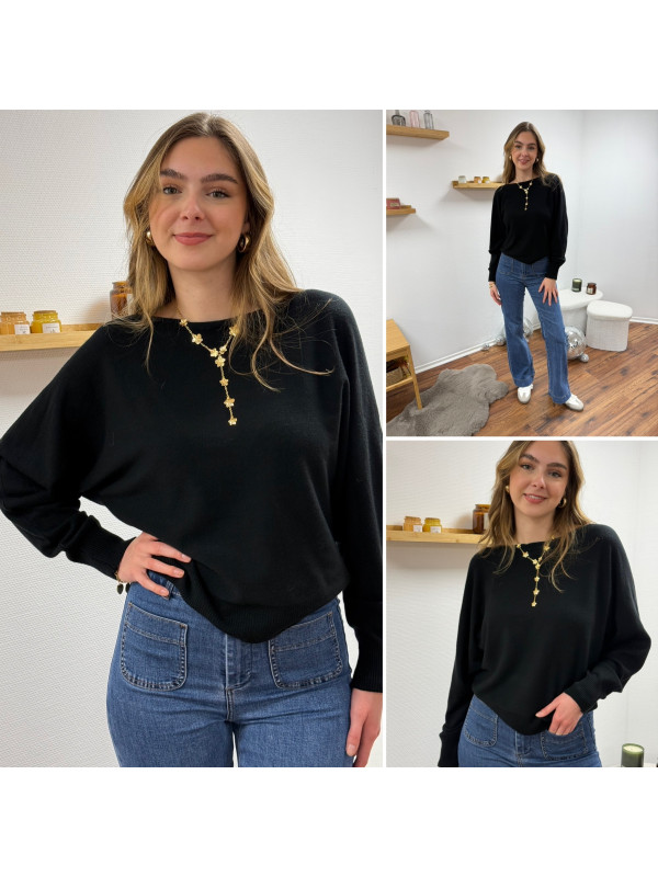 Pull léger chocolat avec col bateau et manches chauve souris...