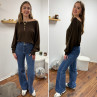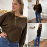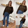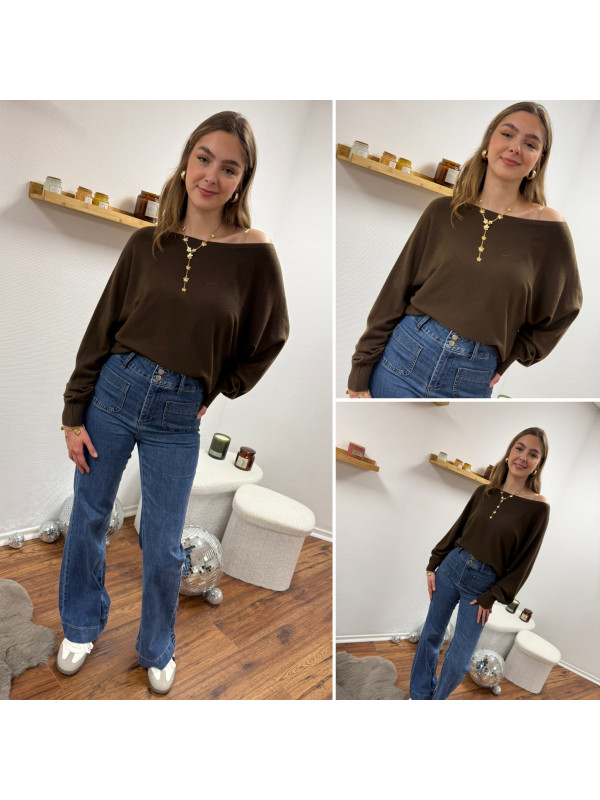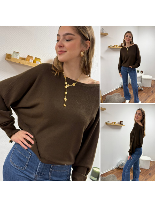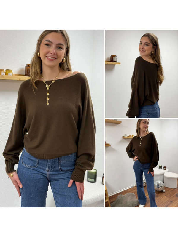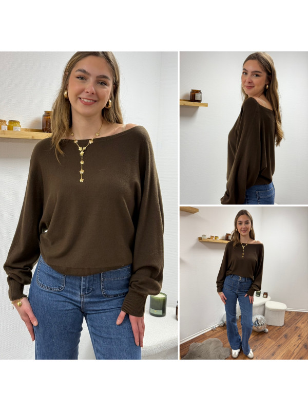 Pull léger noir avec col bateau et manches chauve souris Cet...