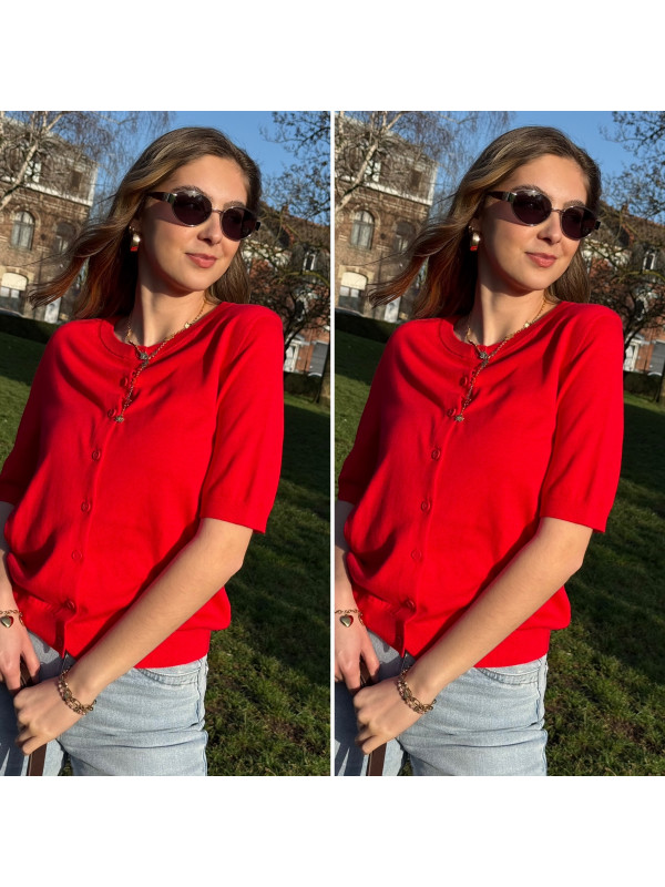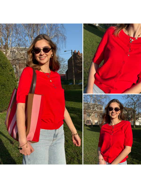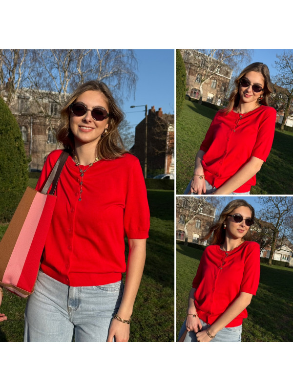 Gilet à courtes manches en fine maille rouge (du 36 au 46)