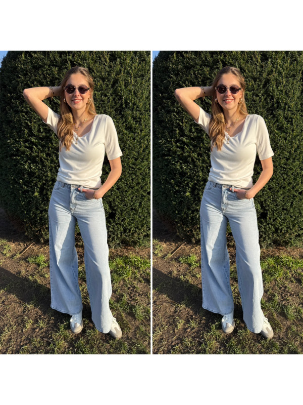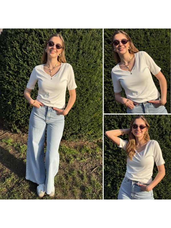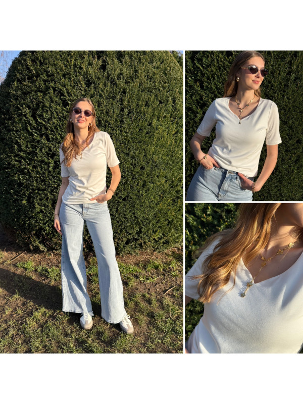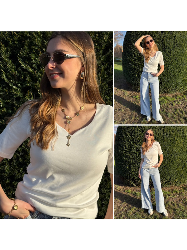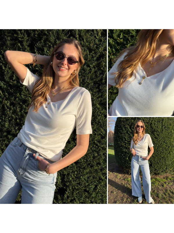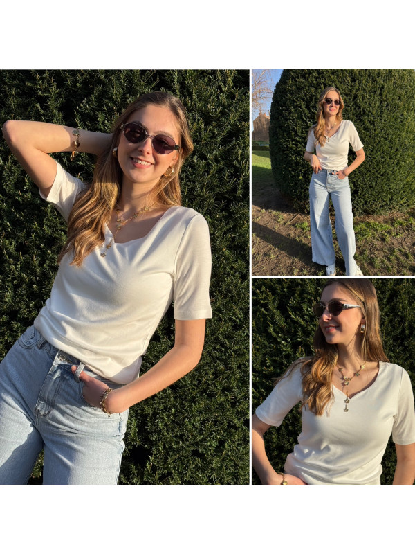 Tee shirt manches courtes blanc avec décolleté en forme de coeur (du 36 au 46)