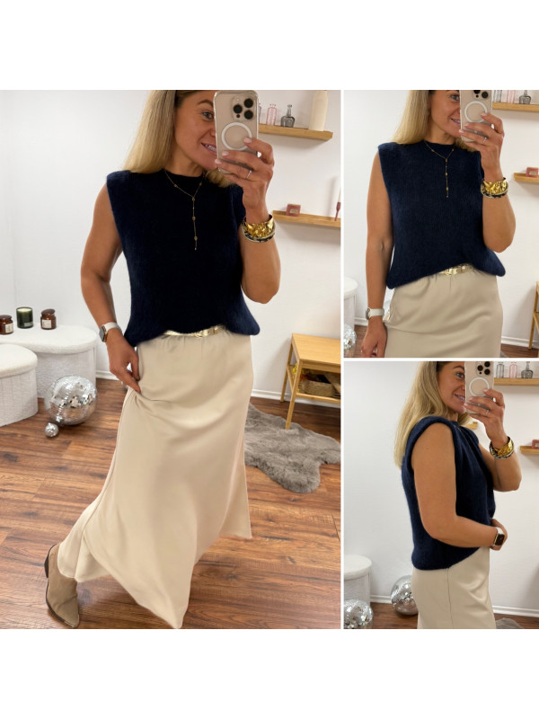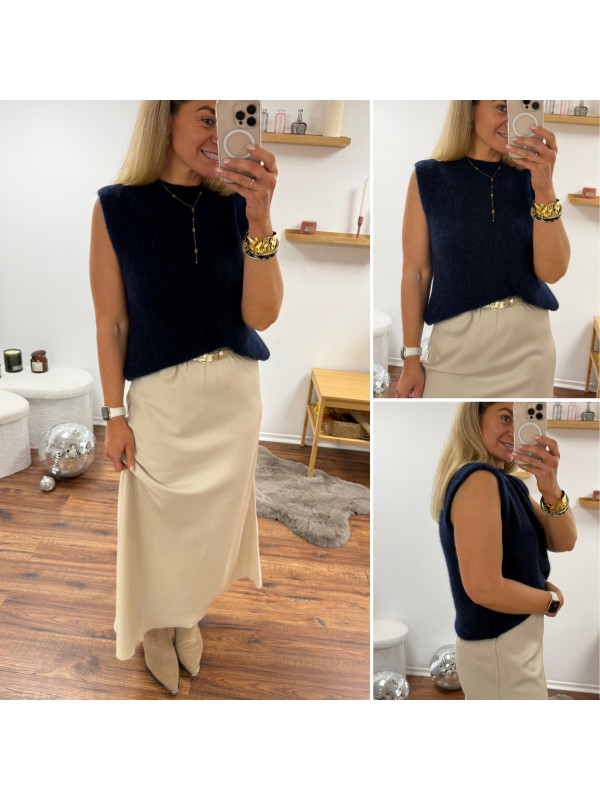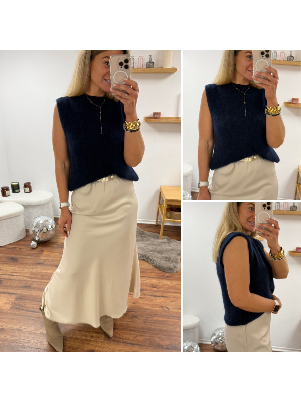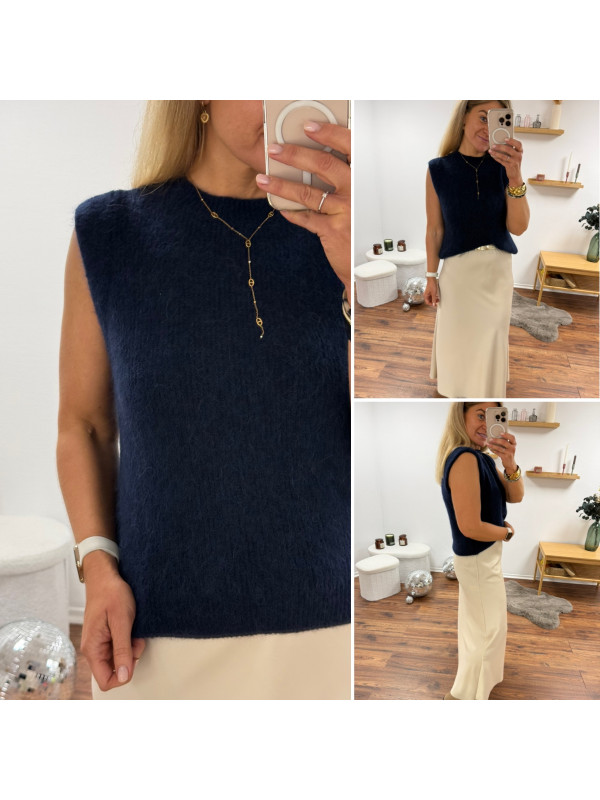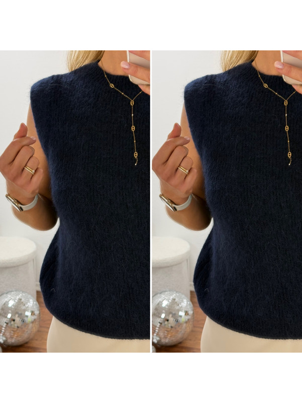 Pull sans manches en alpaga bleu marine