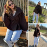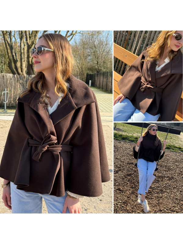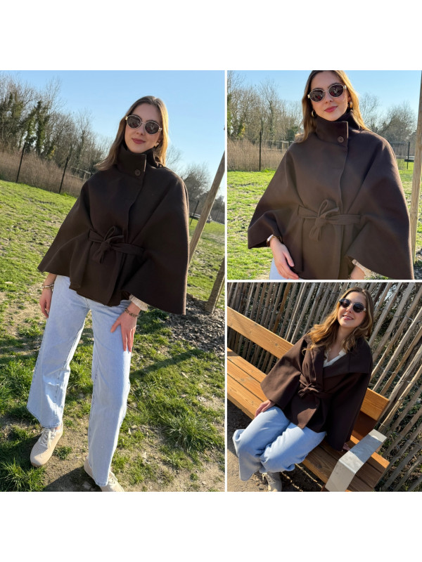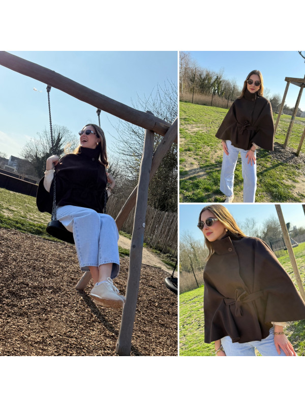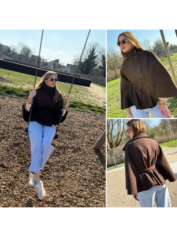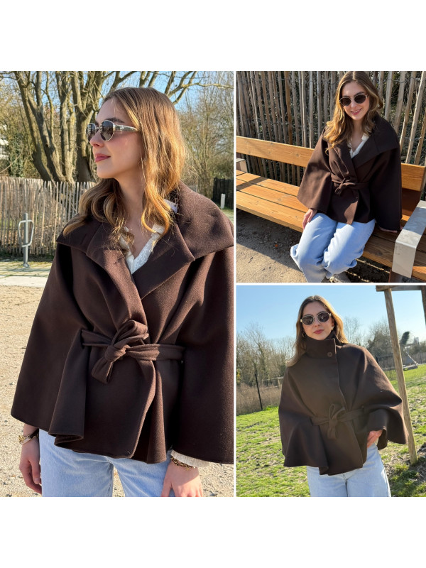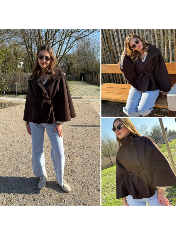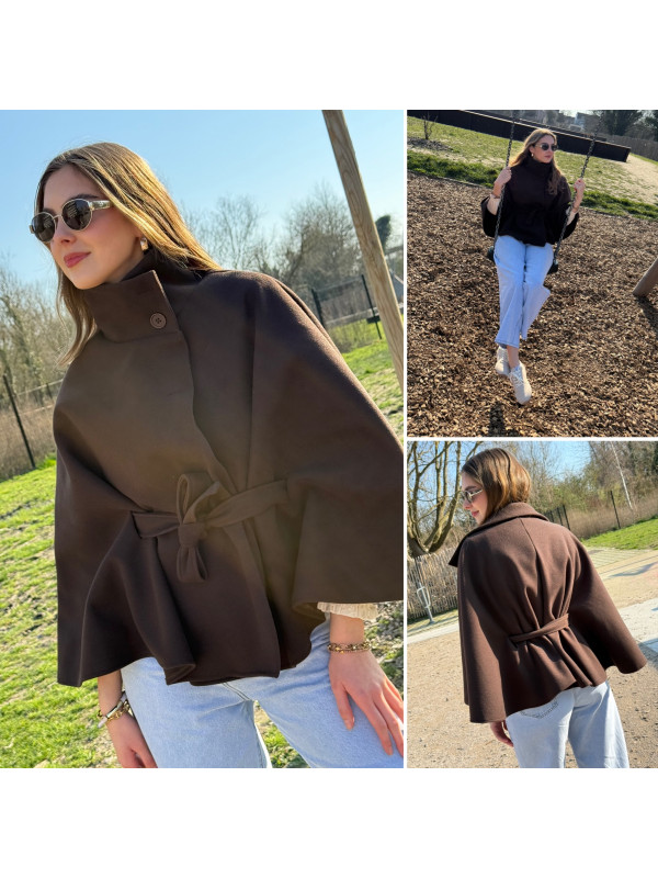 Veste cape cassis avec col montant et ceinture à la taille Cet...