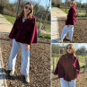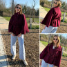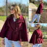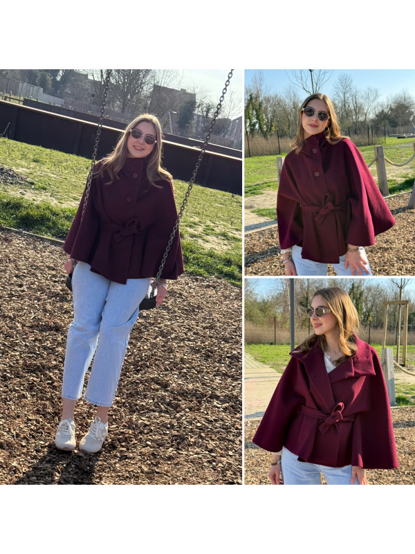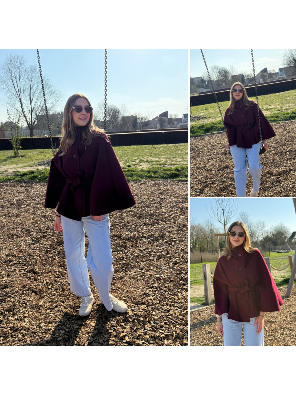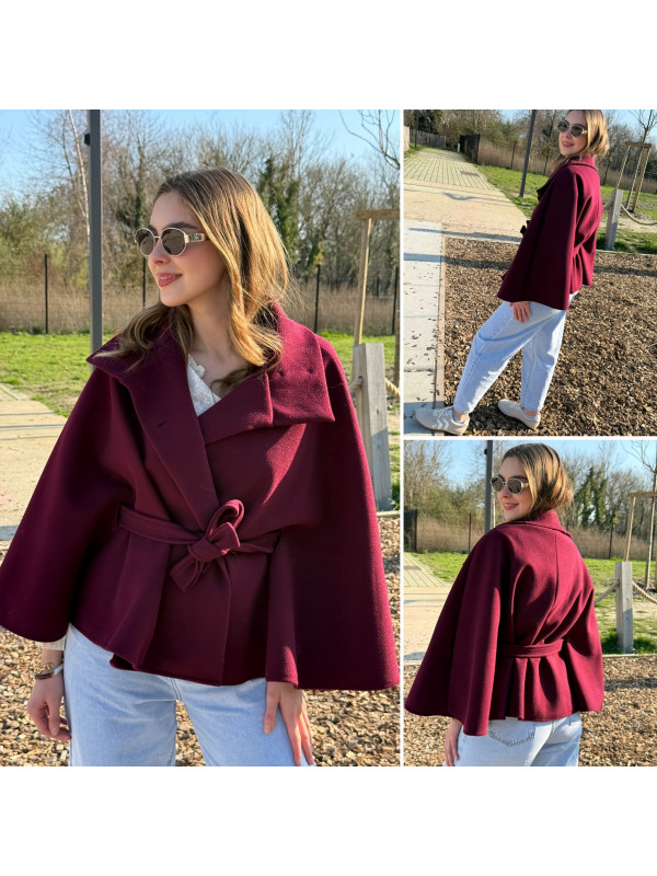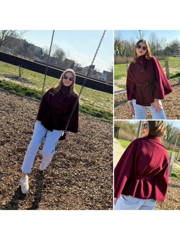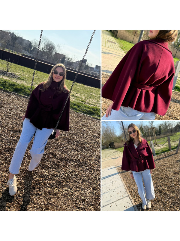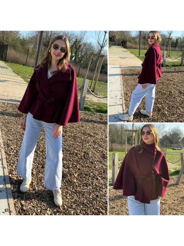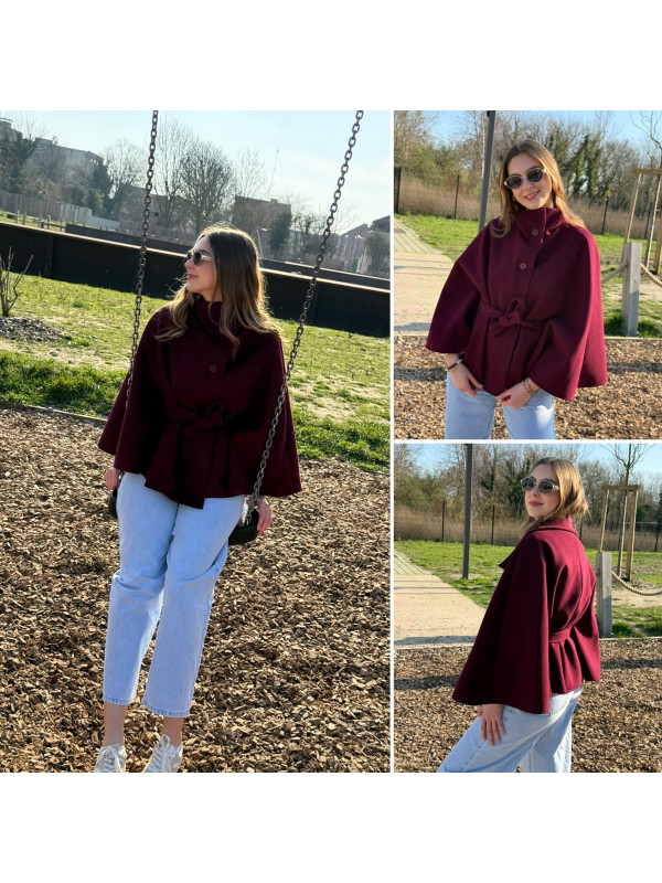 Veste cape cassis avec col montant et ceinture à la taille