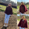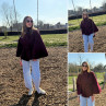 Veste cape chocolat avec col montant et ceinture à la taille...