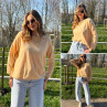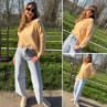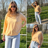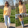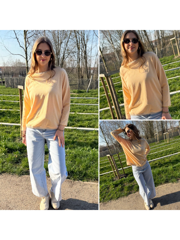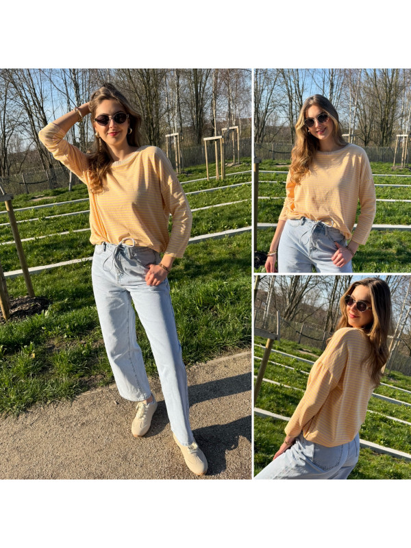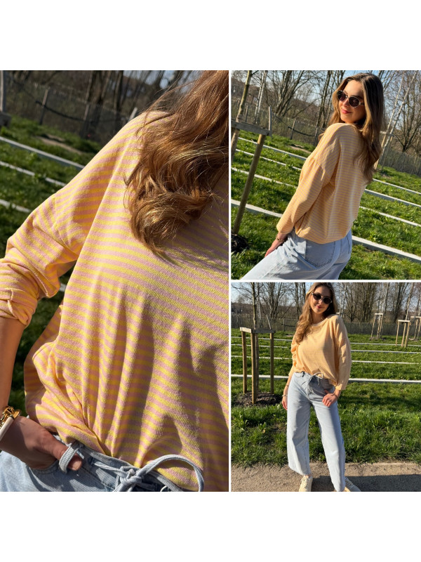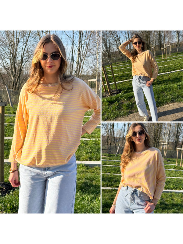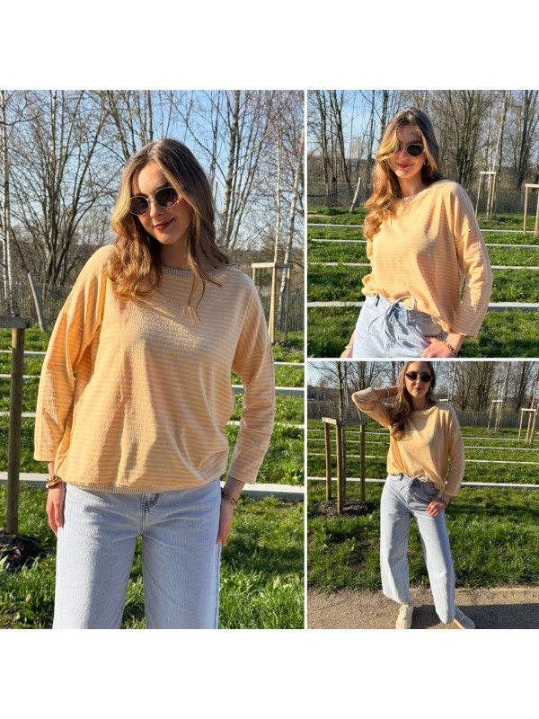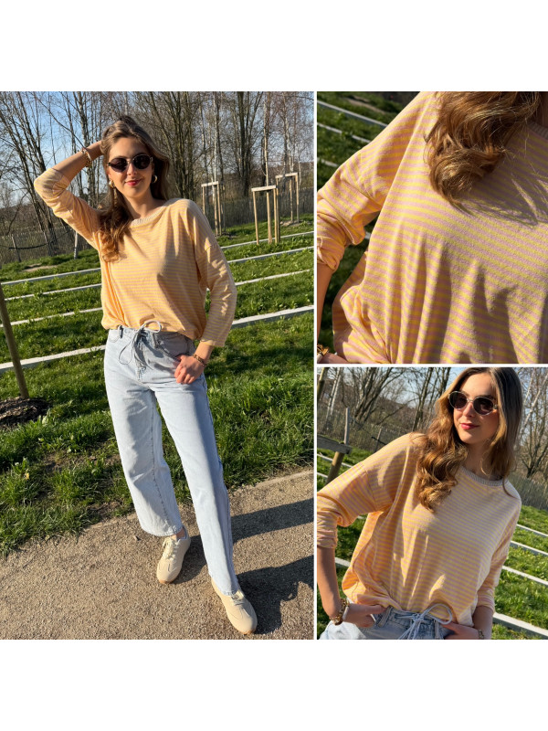 Pull fin à manches longues marinière rayé jaune et rose