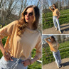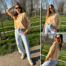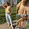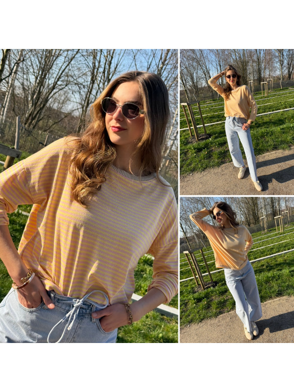 Pull fin à manches longues marinière rayé jaune et beige Cet...