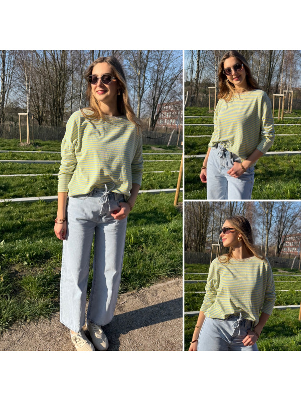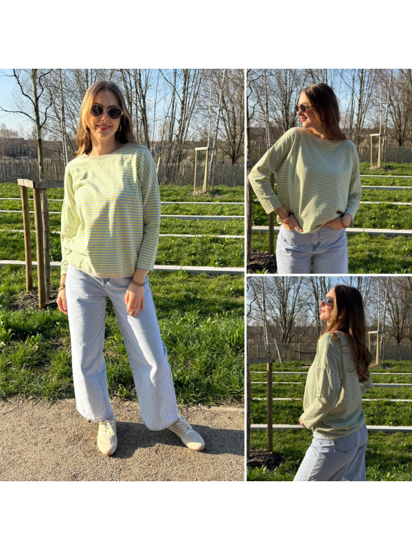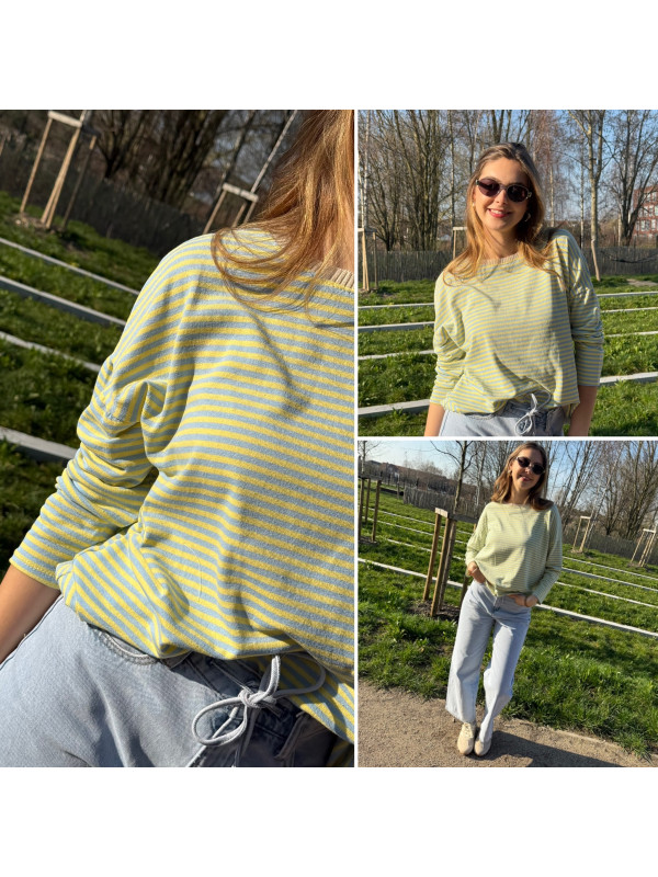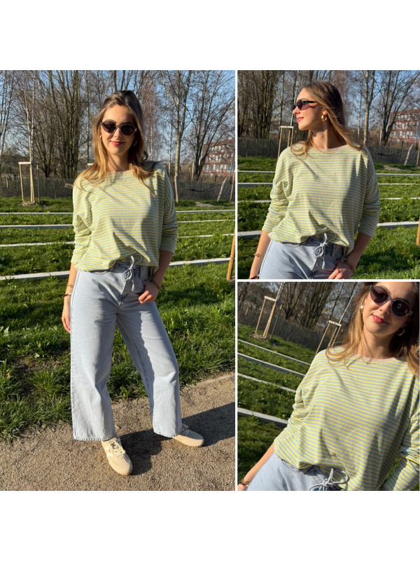 Pull fin à manches longues marinière rayé jaune et bleu