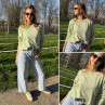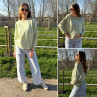 Pull fin à manches longues marinière rayé jaune et beige Cet...