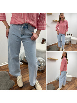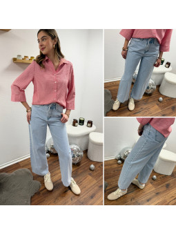 Jean wide leg bleu clair avec lien à la taille Disponible du...