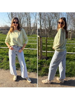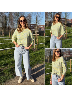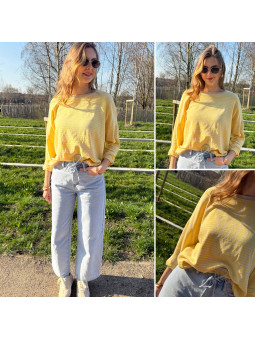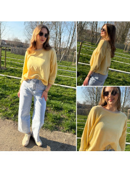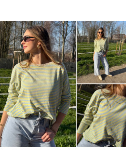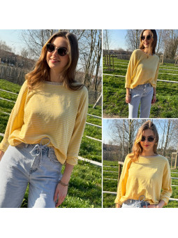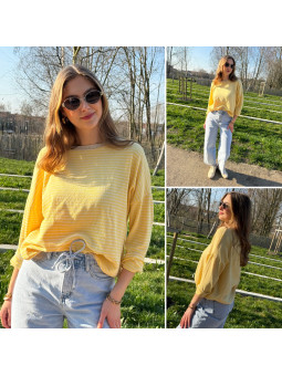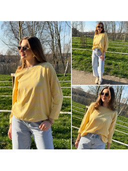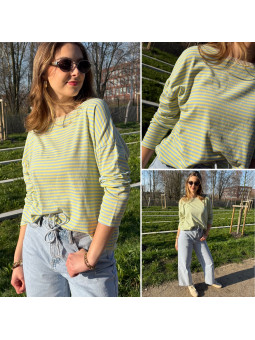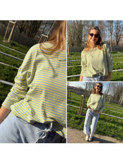 Pull fin à manches longues marinière rayé jaune et bleu Cet...