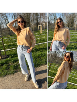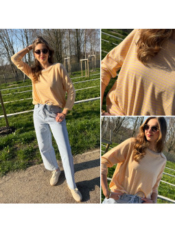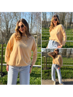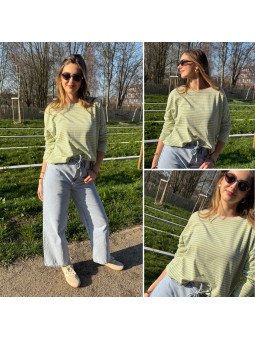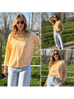Pull fin à manches longues marinière rayé jaune et beige Cet...
