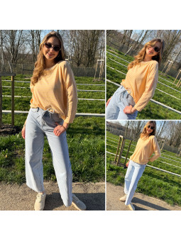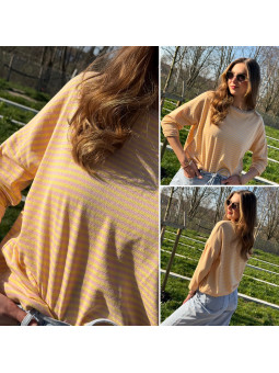 Pull fin à manches longues marinière rayé jaune et rose Cet...