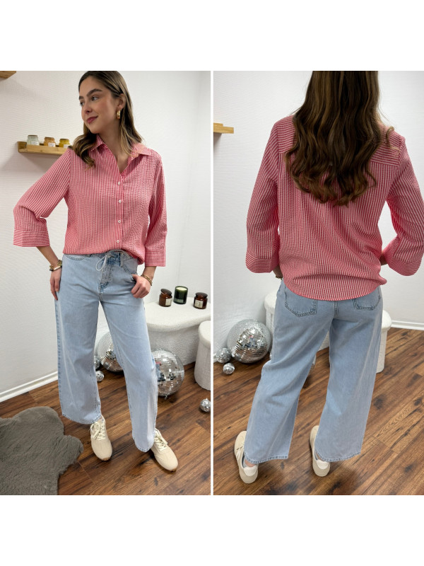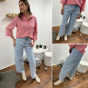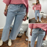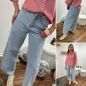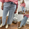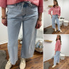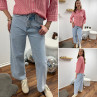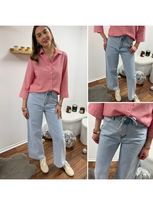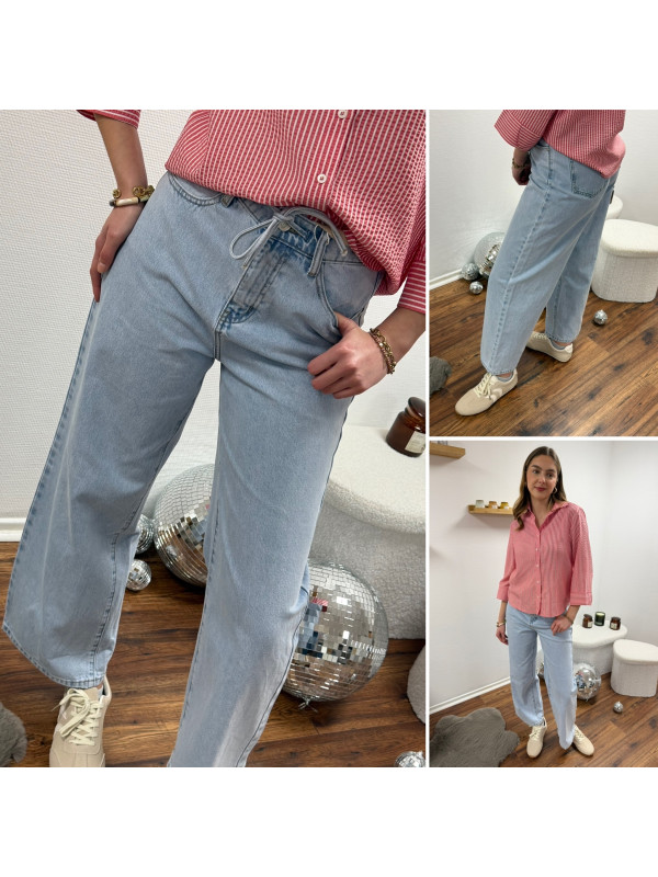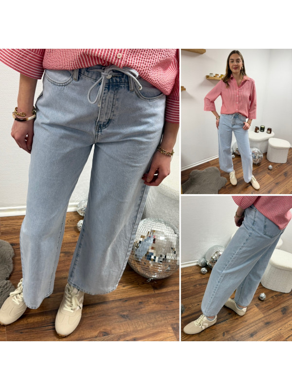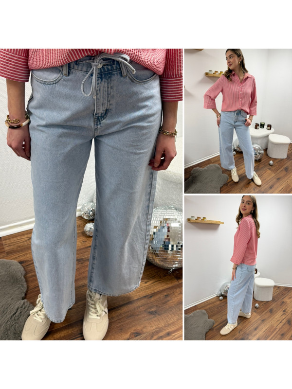 Jean wide leg bleu clair avec lien à la taille