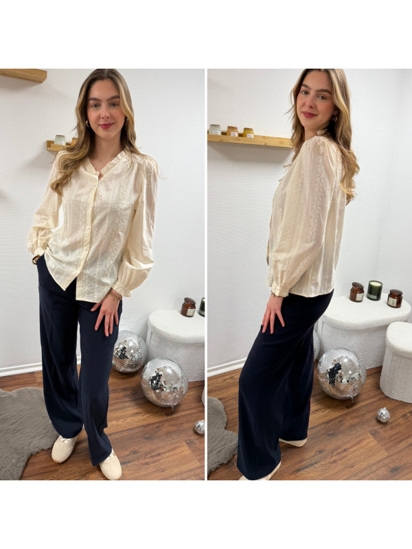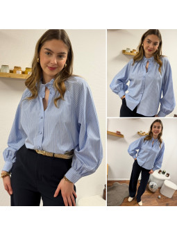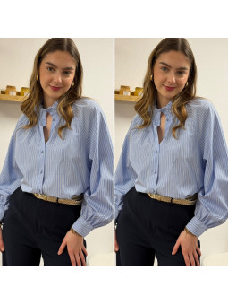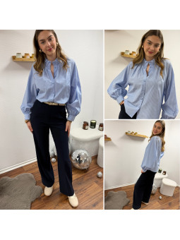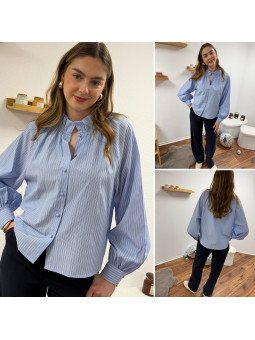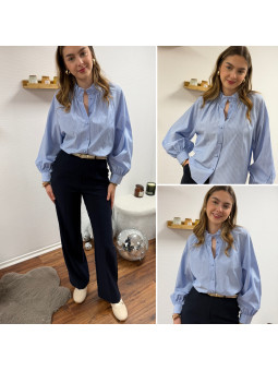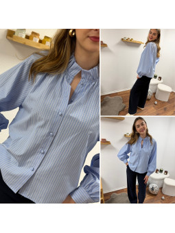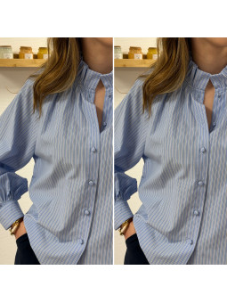 Chemise à rayures bleues et blanches avec col volant Le SM...