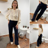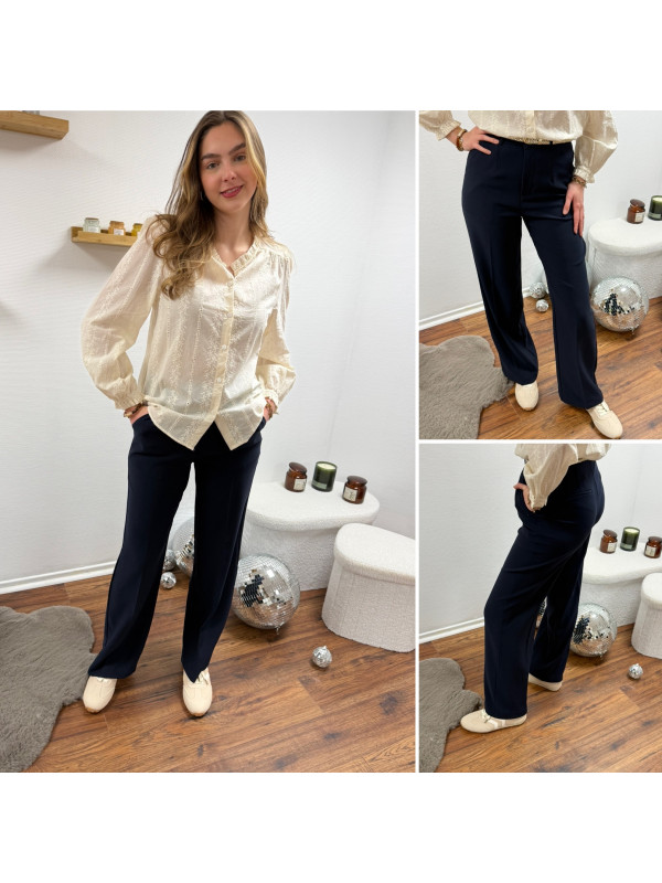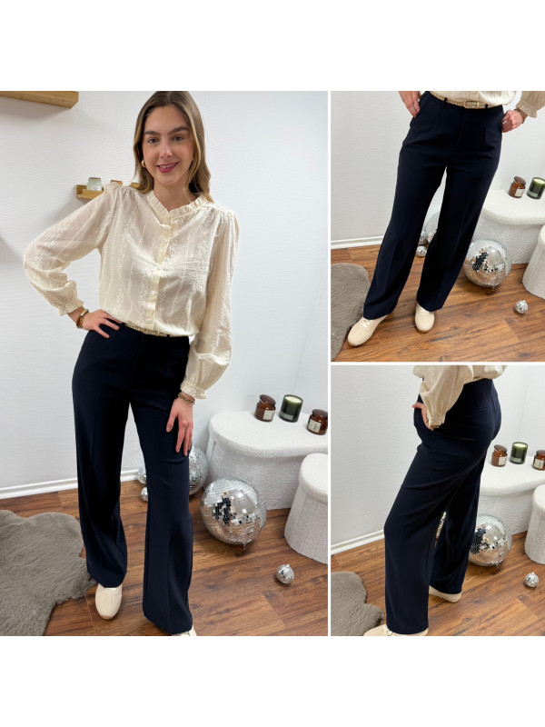 Pantalon fluide droit bleu marine
