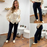 Le modèle mesure 1,75m et porte une taille 36.