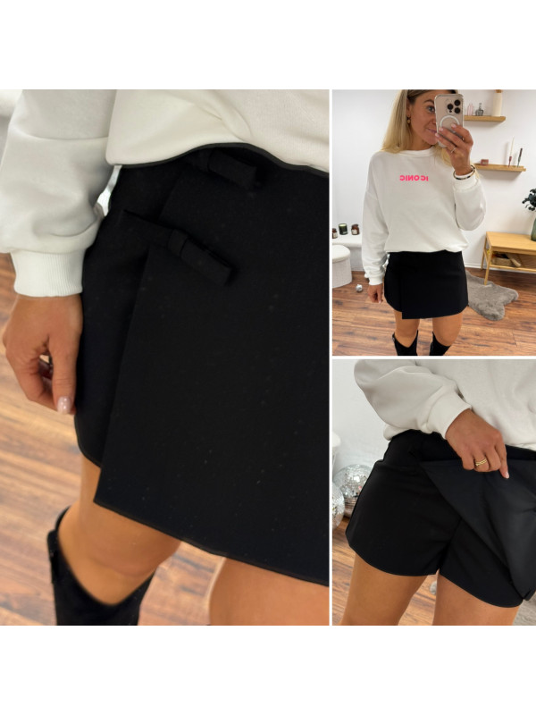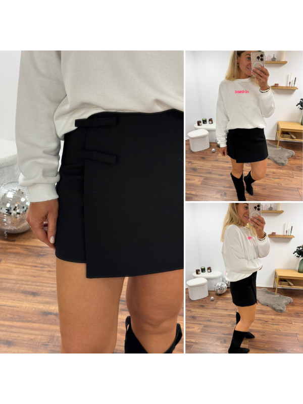 Jupe short noire avec petits noeuds sur le devant