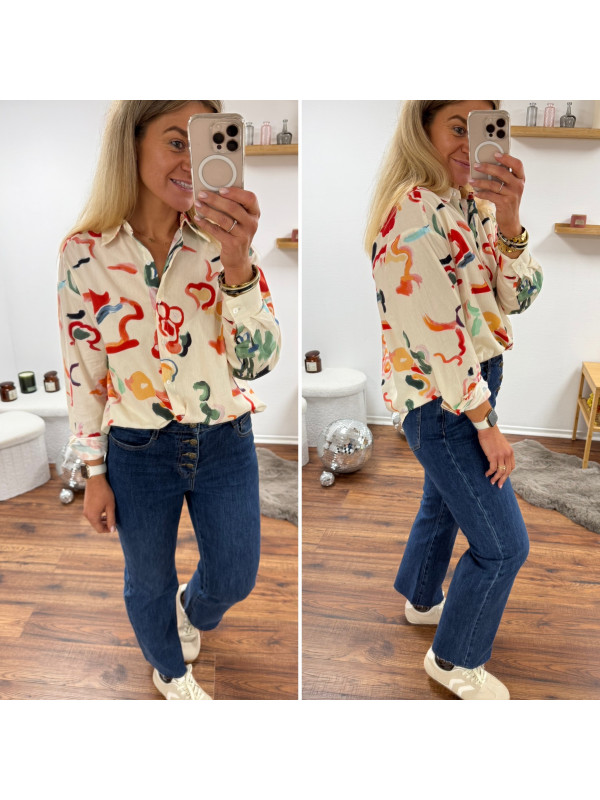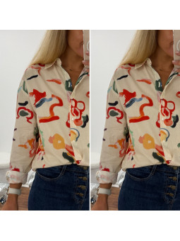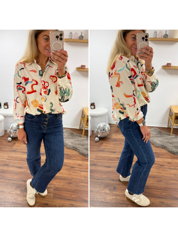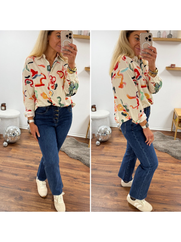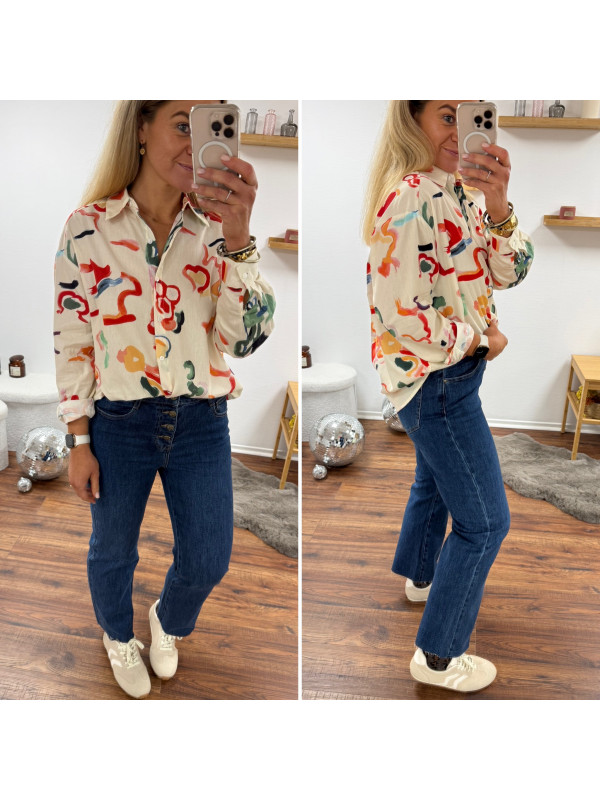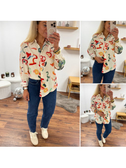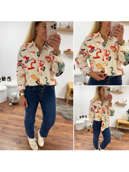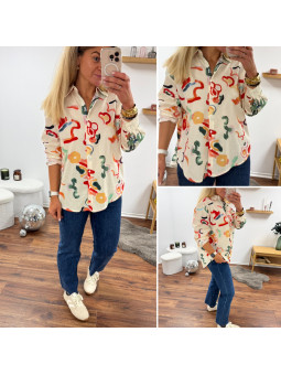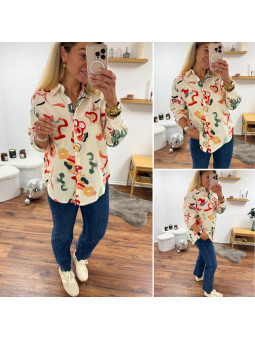 Chemise écrue avec motifs colorés Le SM équivaut au 36-38, le...