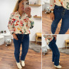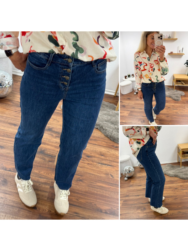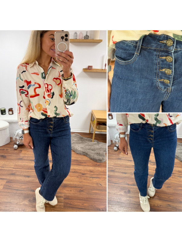 Jean straight bleu denim avec boutons bronzes sur le devant