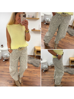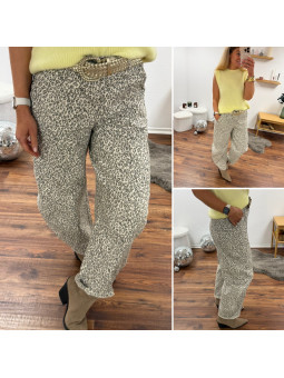 Jean ballon léopard clair Le XS équivaut au 34, le S au 36,...