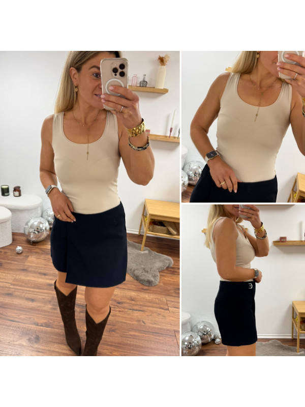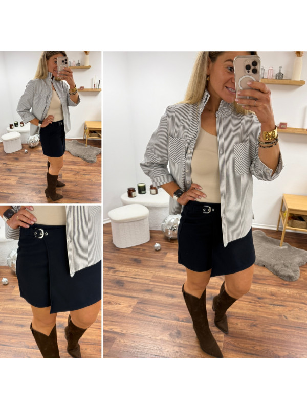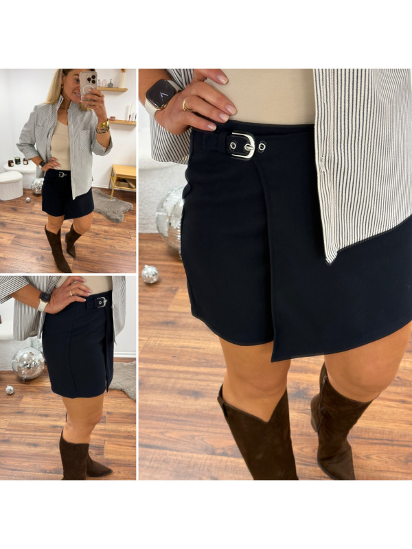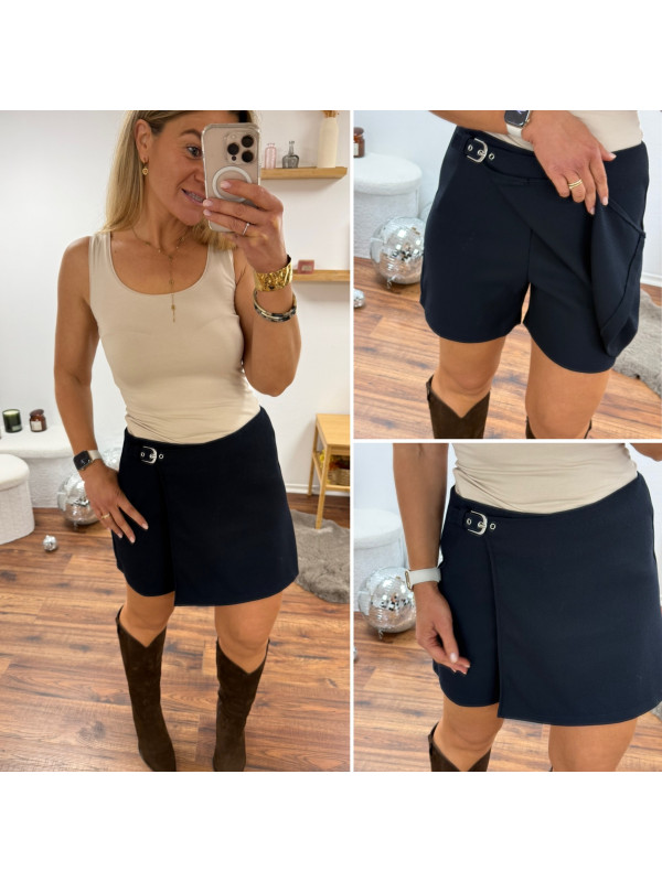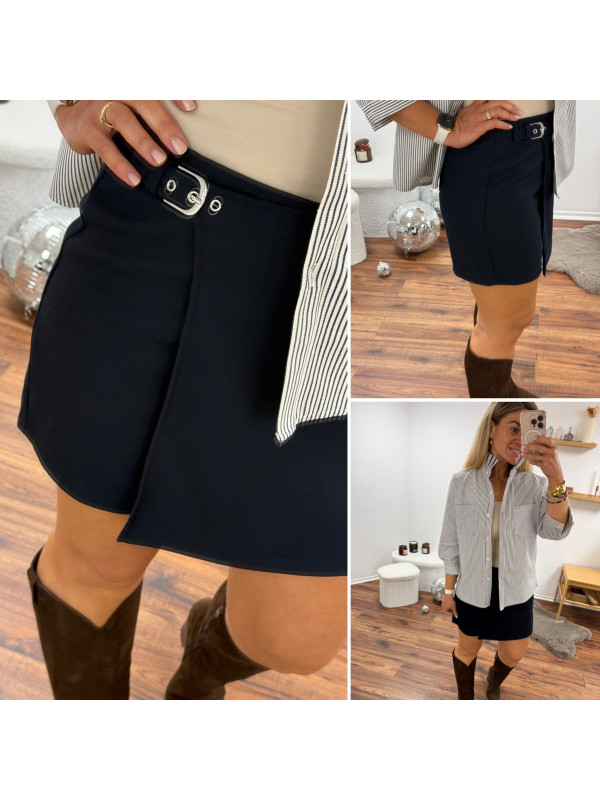 Jupe short bleu marine avec boucle de ceinture à la taille (du 36 au 46)