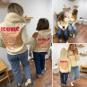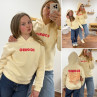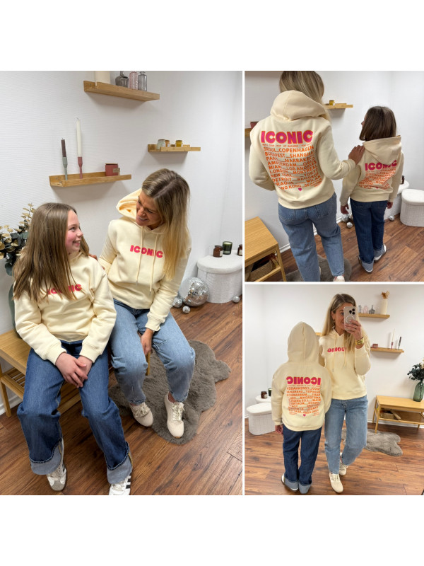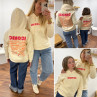 Sweat à capuche iconic abricot avec écritures oranges et roses fluo dans le dos