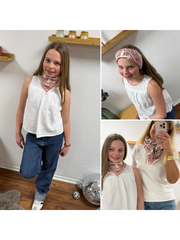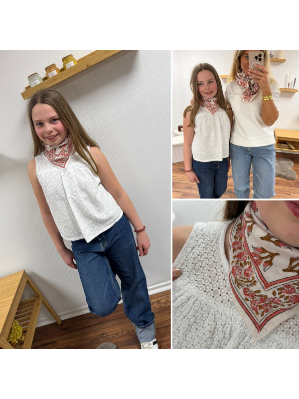 Grand foulard en coton écru avec motifs roses et ocres (uniquement dispo en boutique)