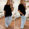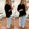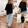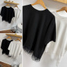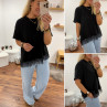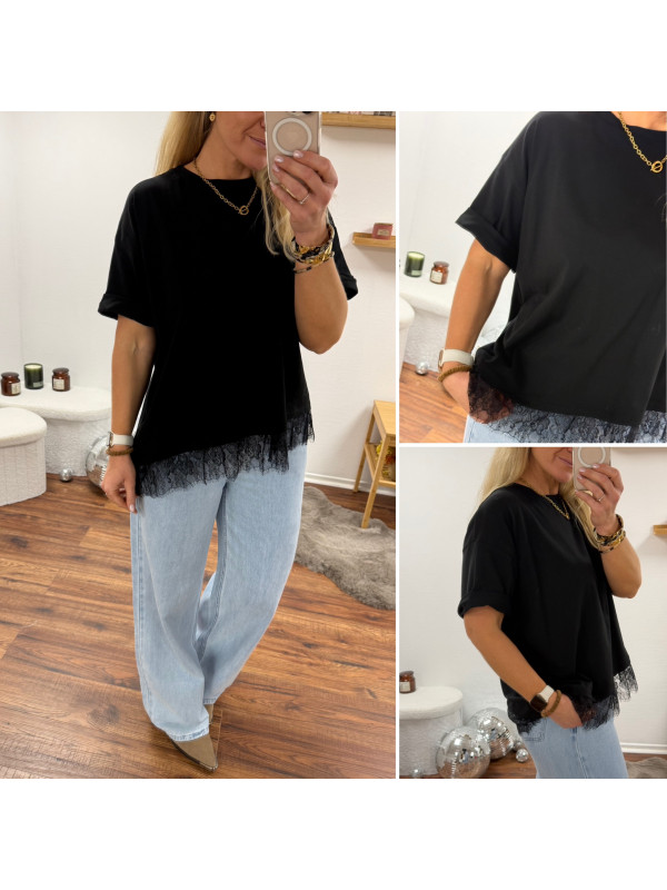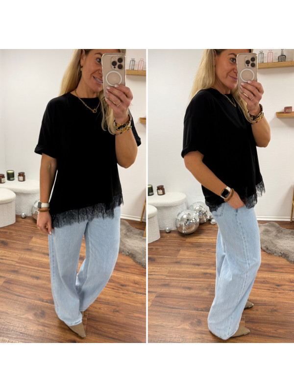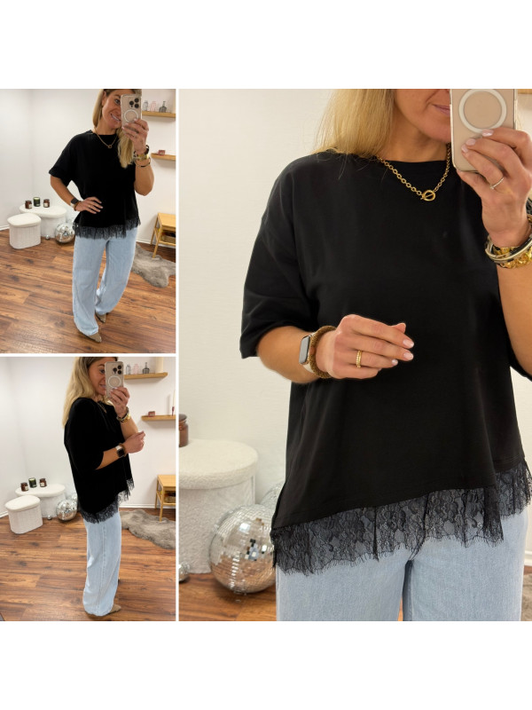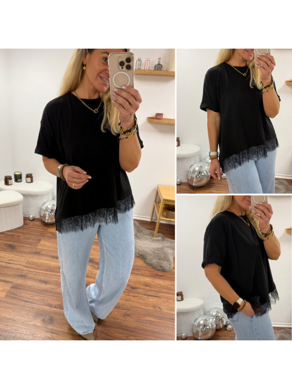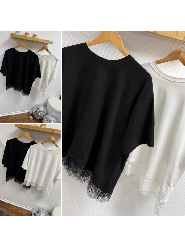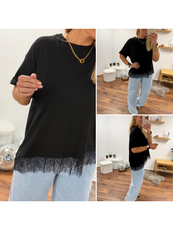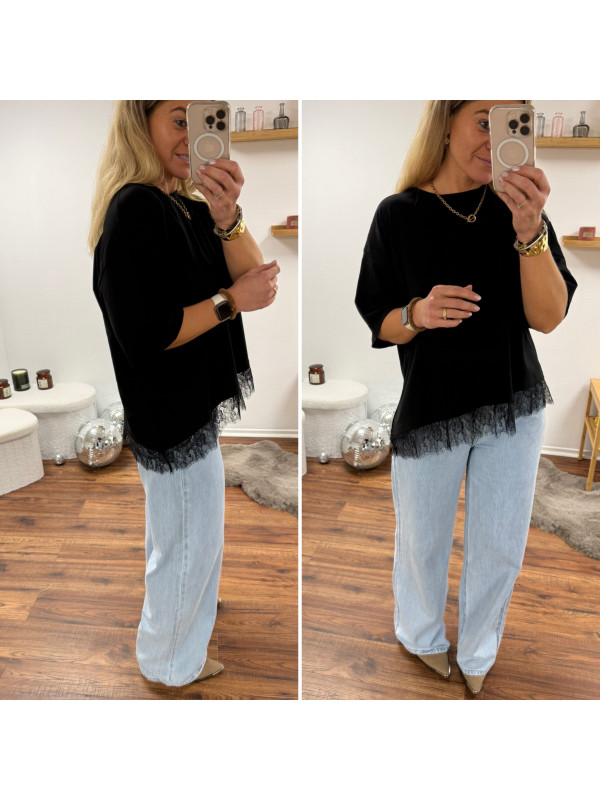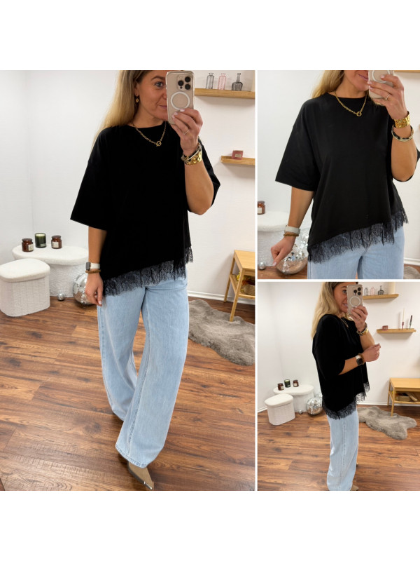 Tee shirt noir asymétrique avec dentelle dans le bas