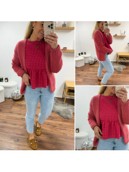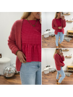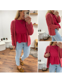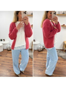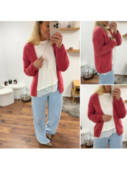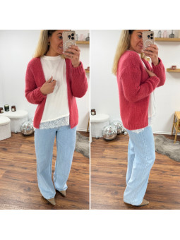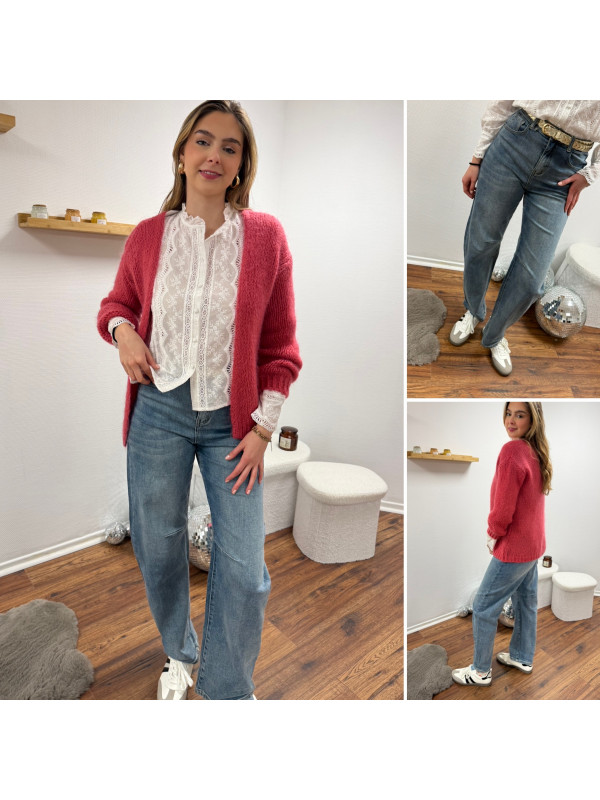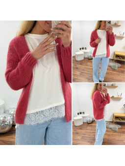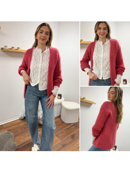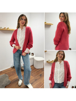Gilet framboise ouvert en mohair à grosses mailles Cet article...