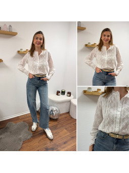 Chemise blanche en coton avec fines broderies Attention, ce...