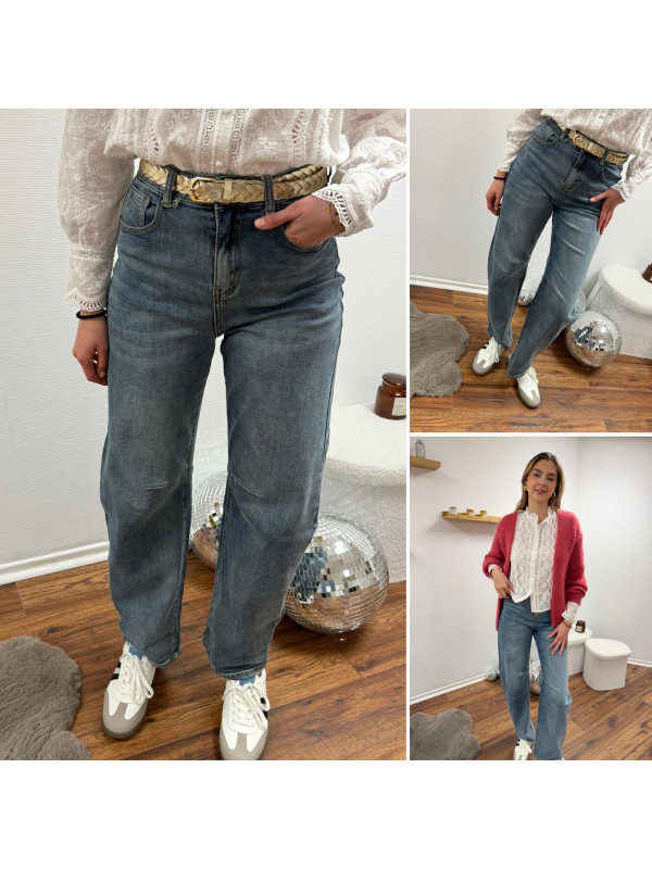 Jean ballon bleu délavé sable