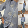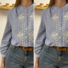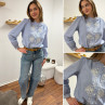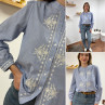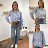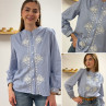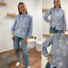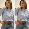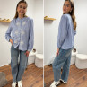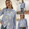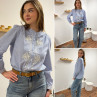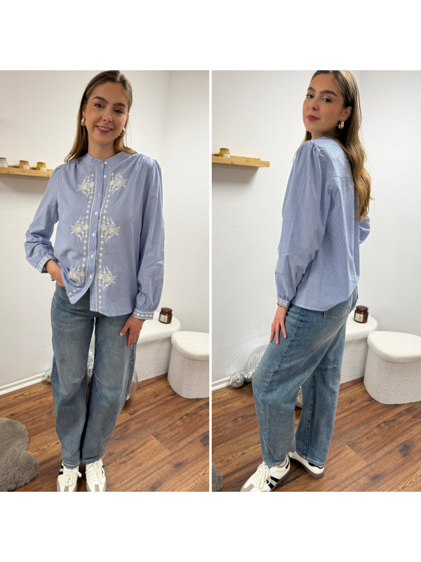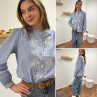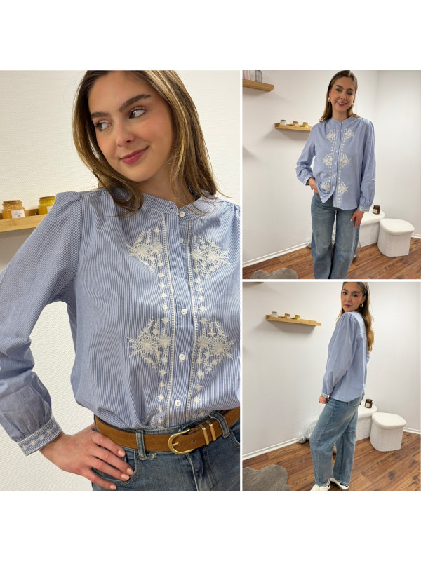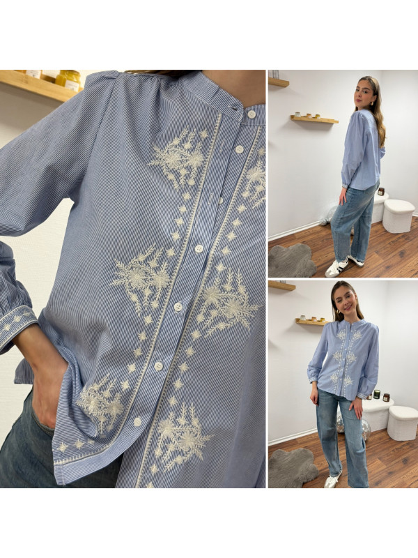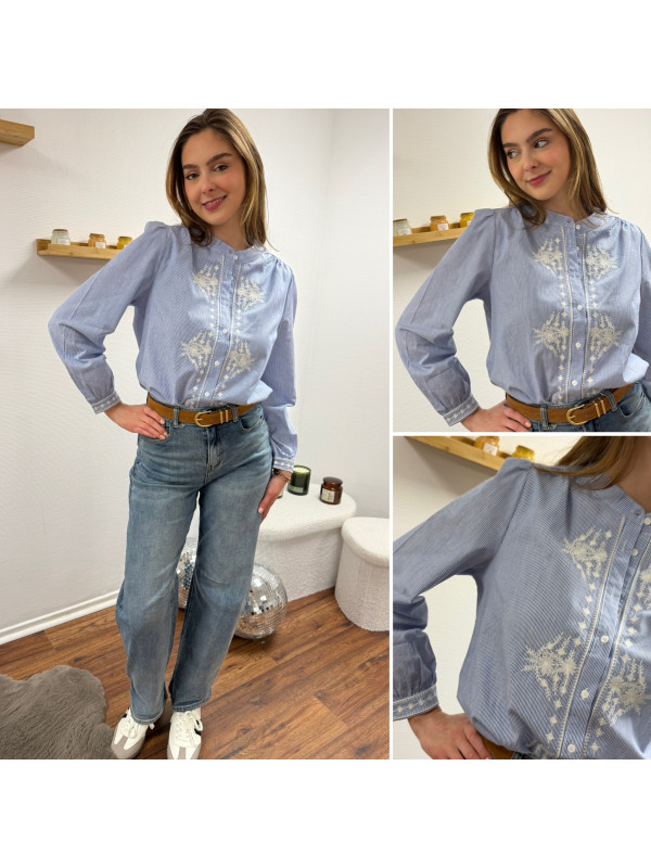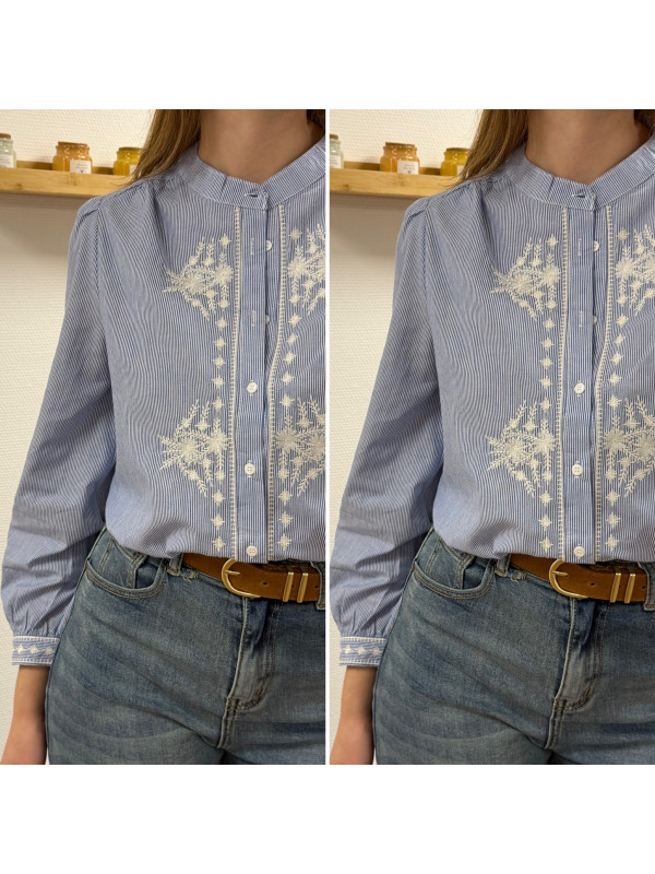 Chemise blanche rayée bleu foncé avec broderies blanches