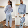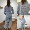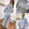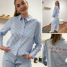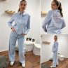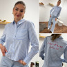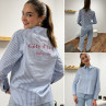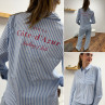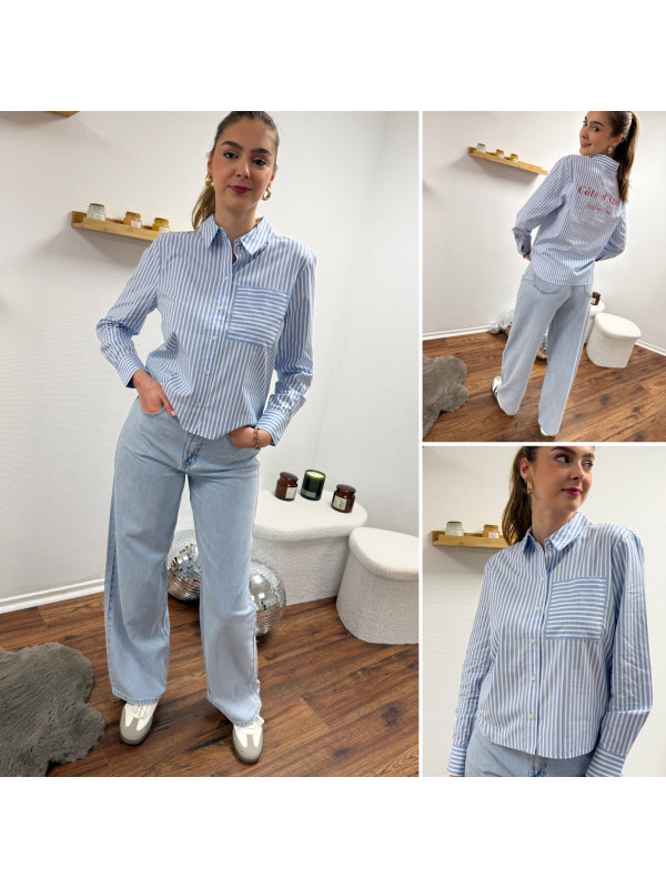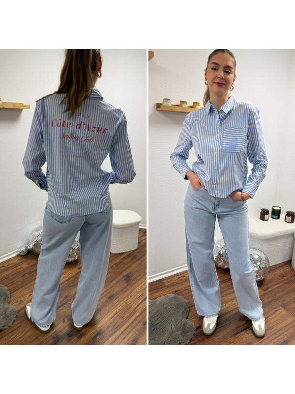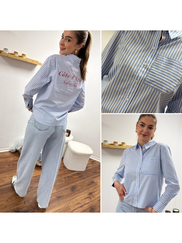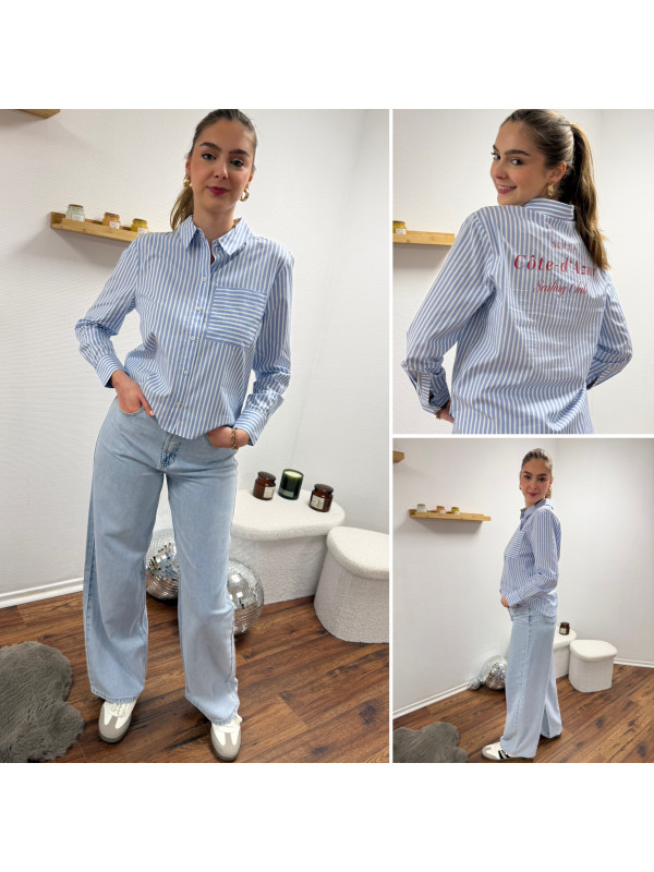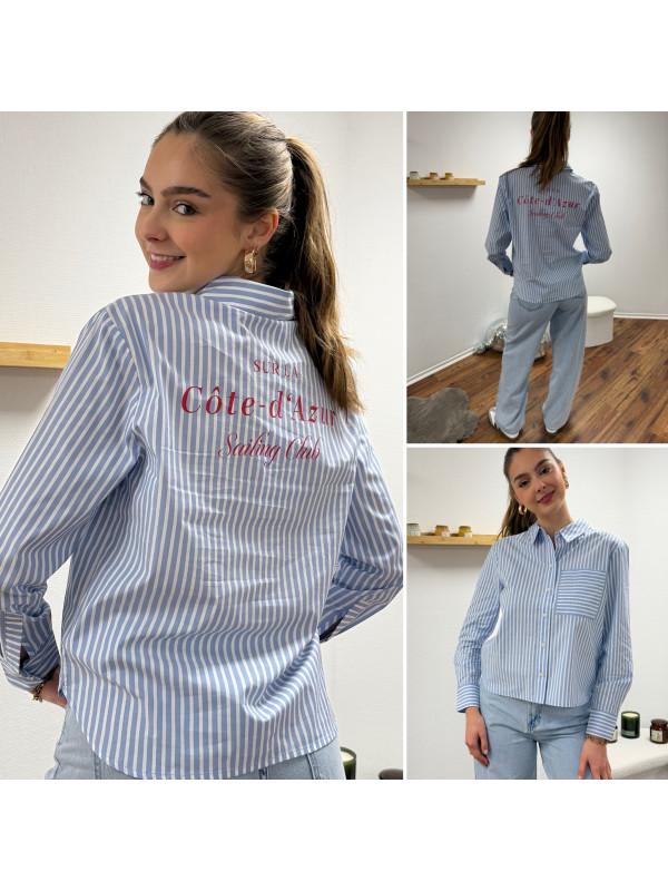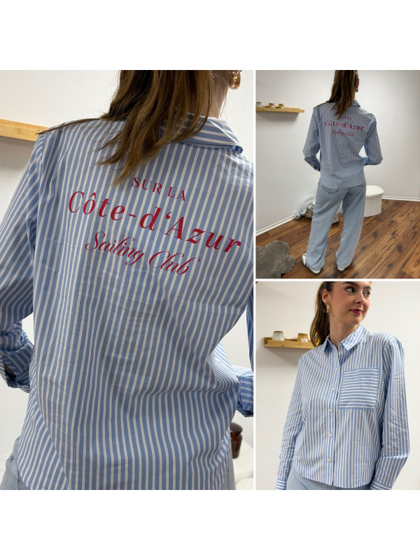 Chemise bleu ciel rayée blanche avec écritures "côte d'azur" en rouge dans le dos (du 36 au 46)