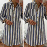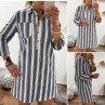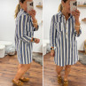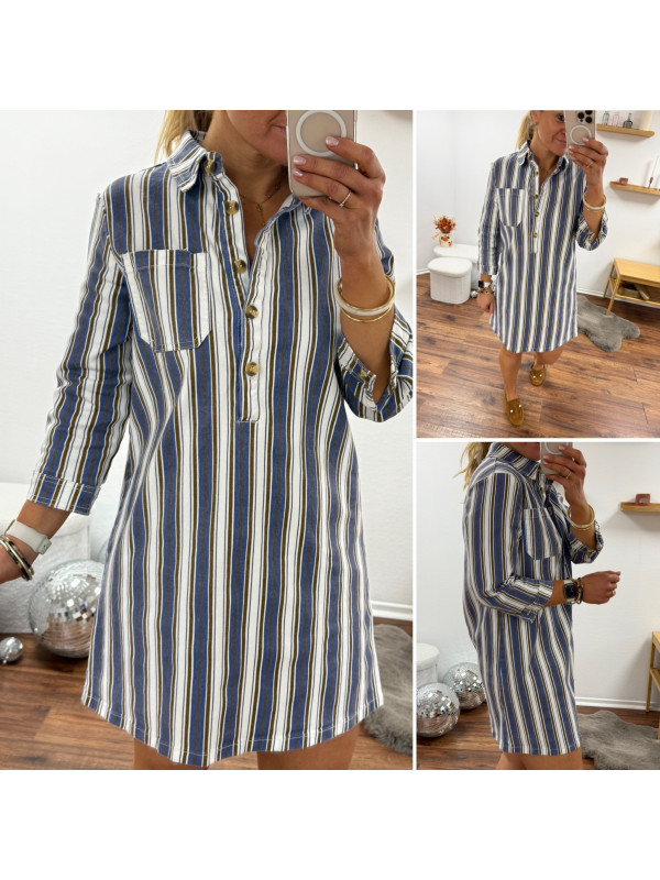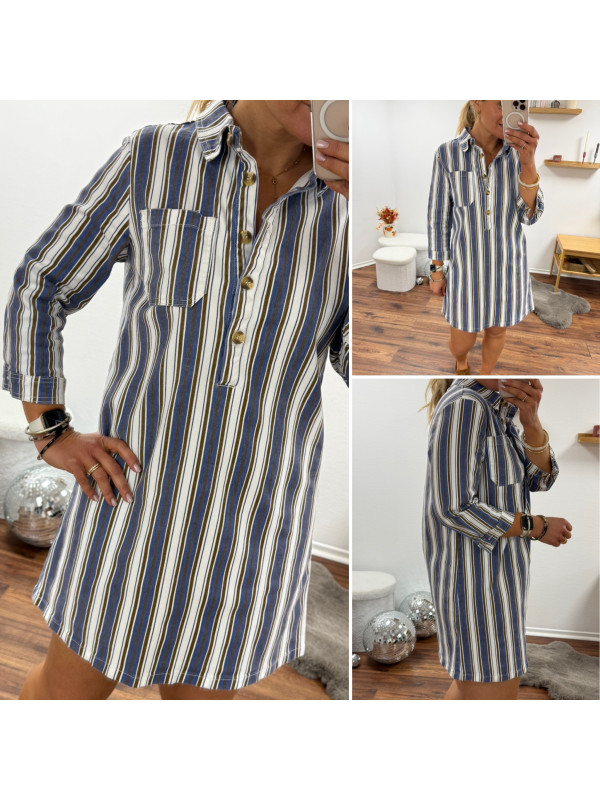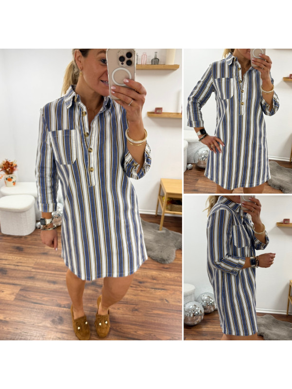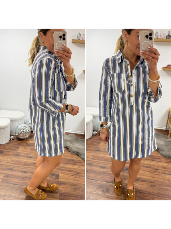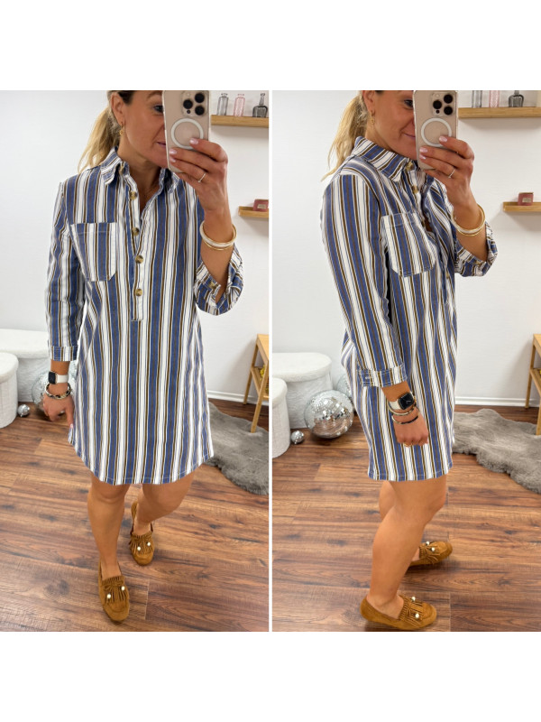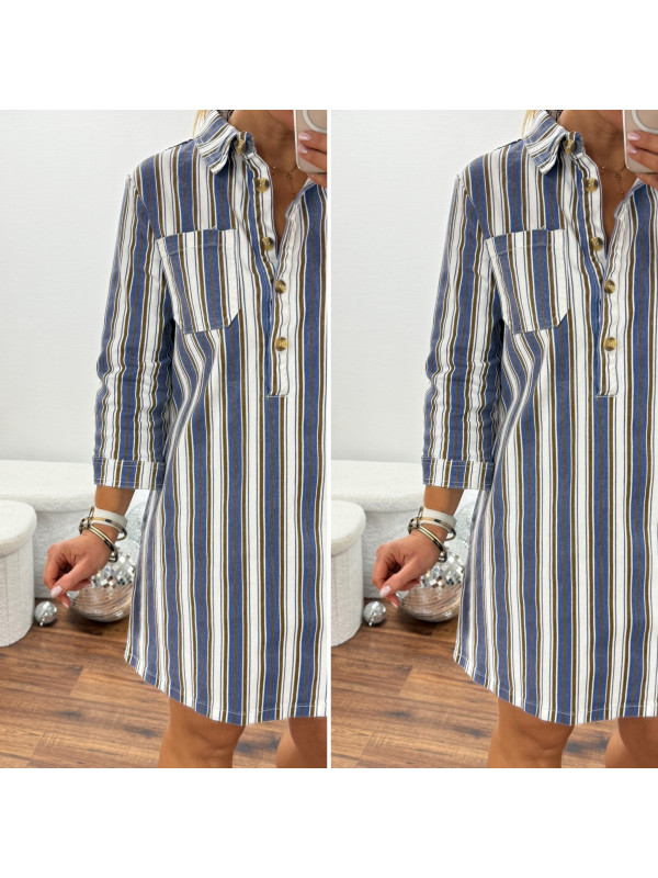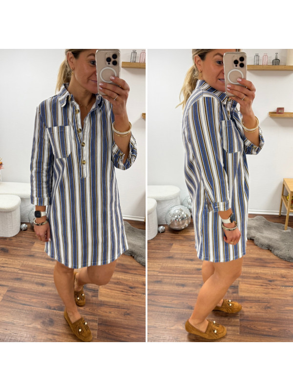 Robe courte en jean blanche à rayures bleues et chocolats