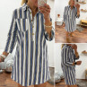 Robe courte en jean blanche à rayures bleues et chocolats