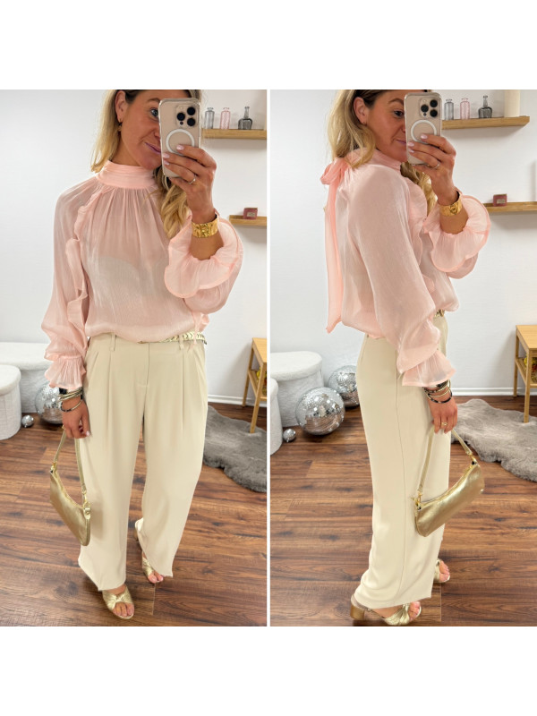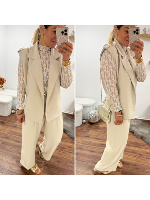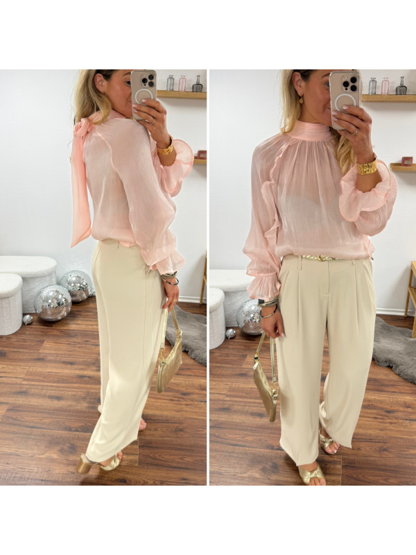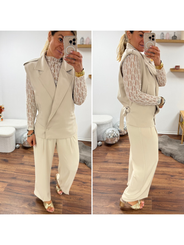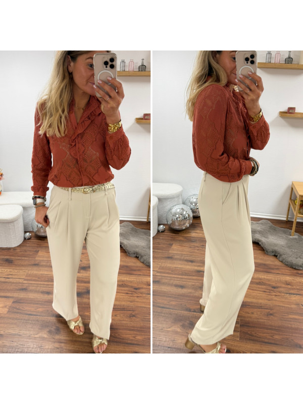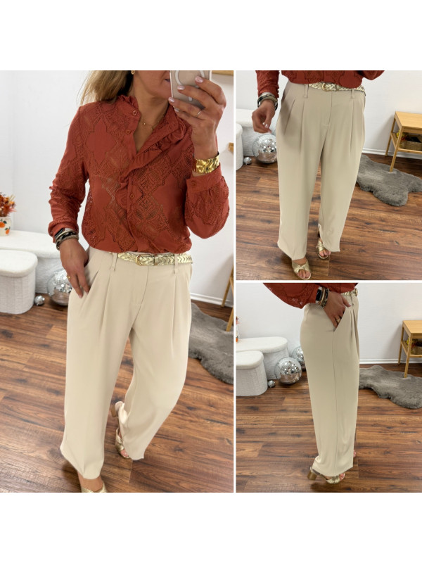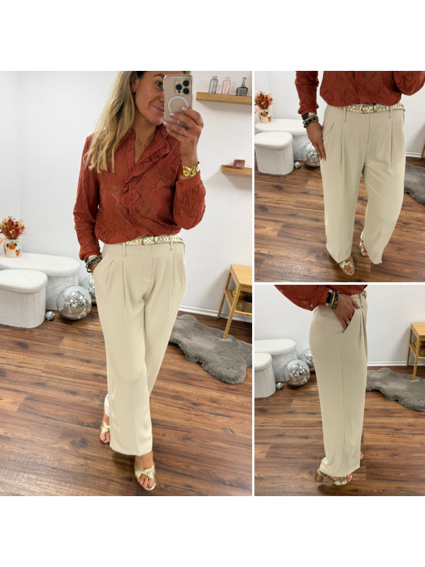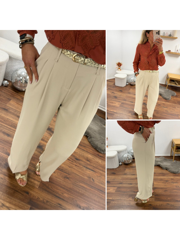Pantalon fluide beige avec ceinture en simili marron