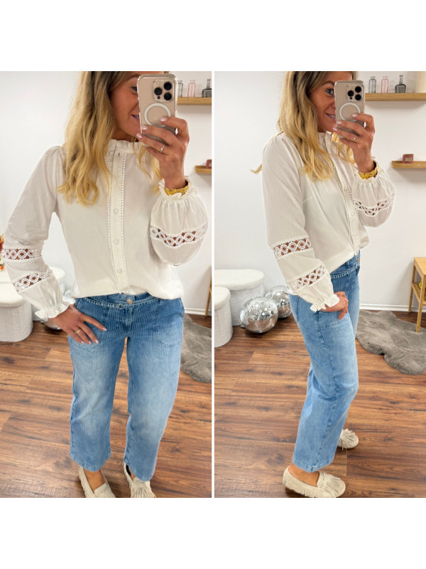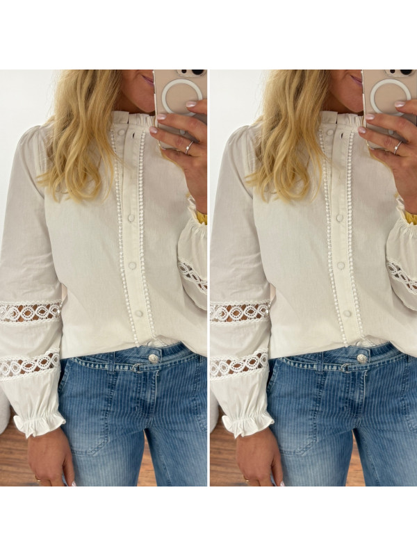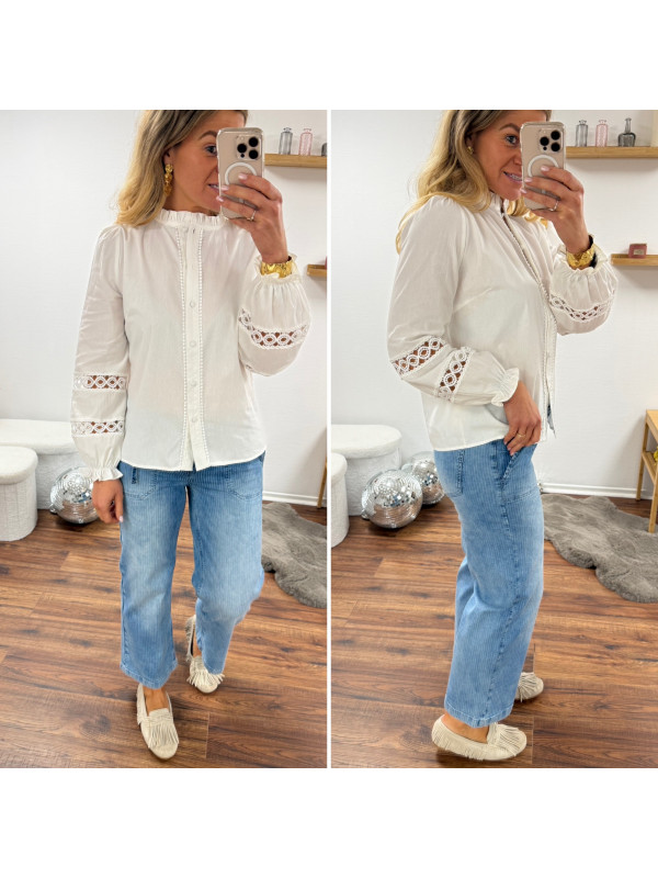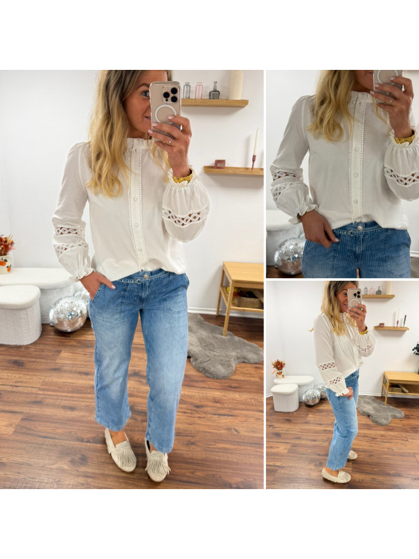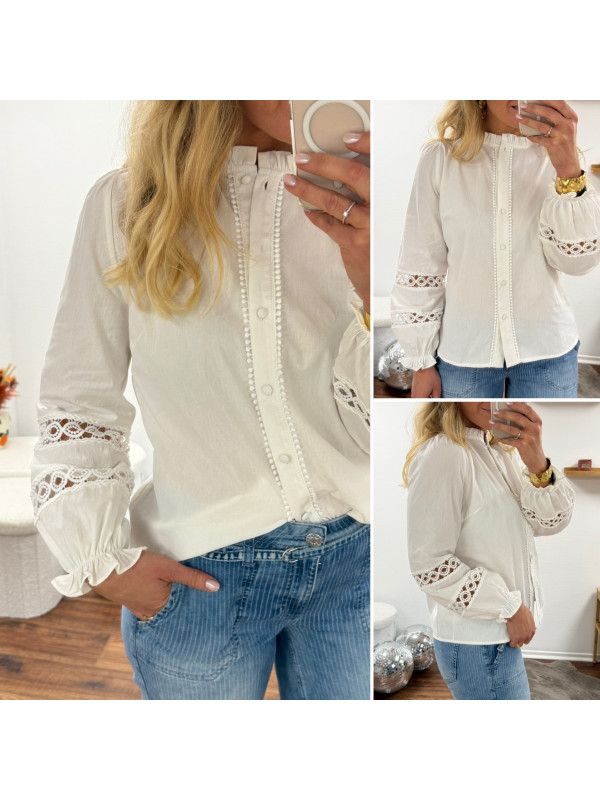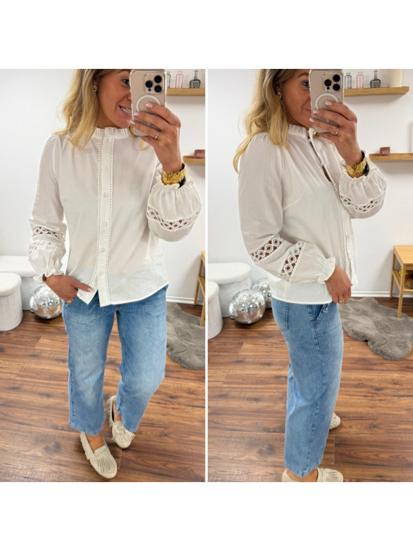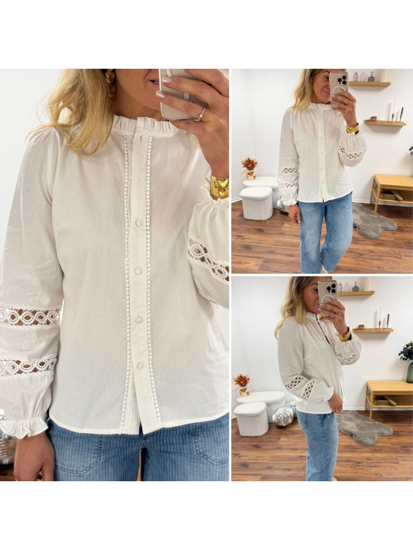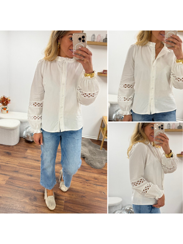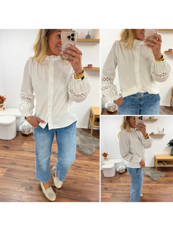 Chemise blanche avec broderies ajourées sur les manches