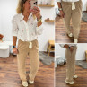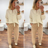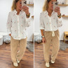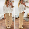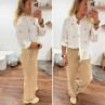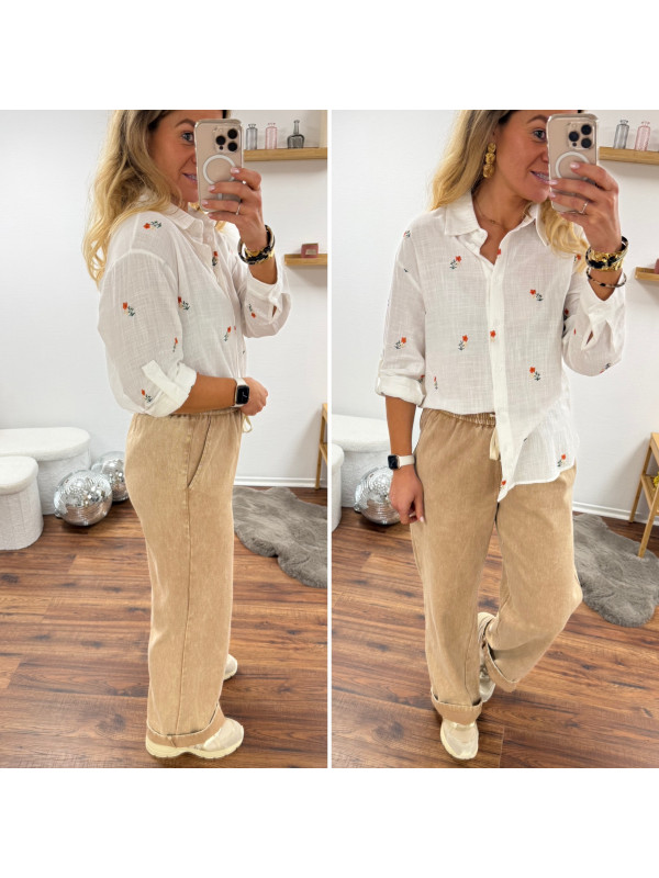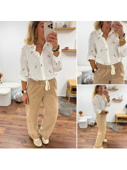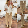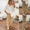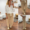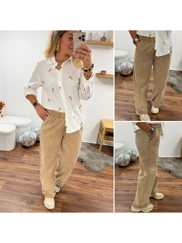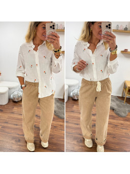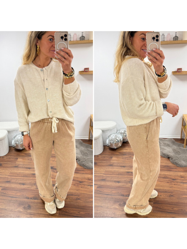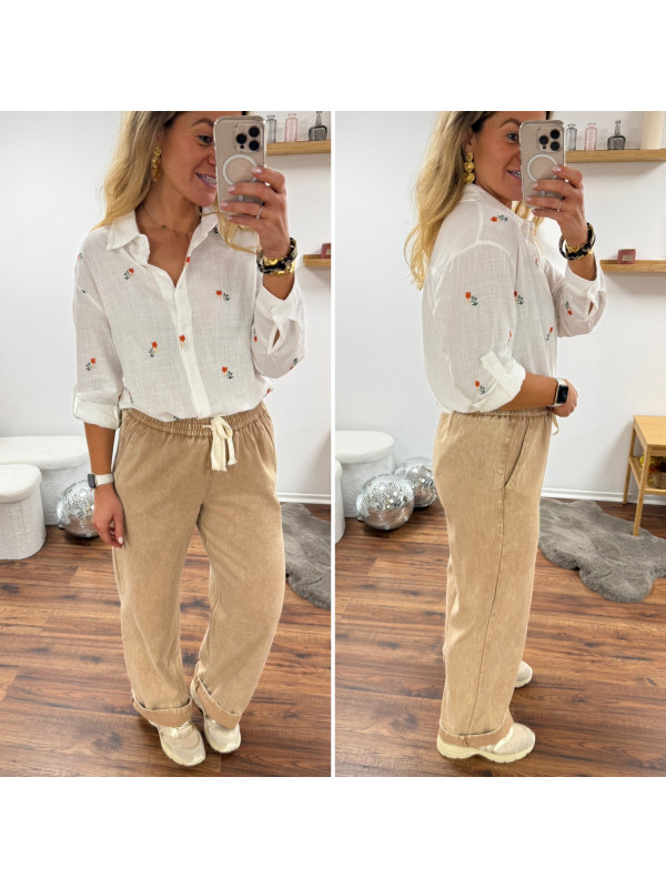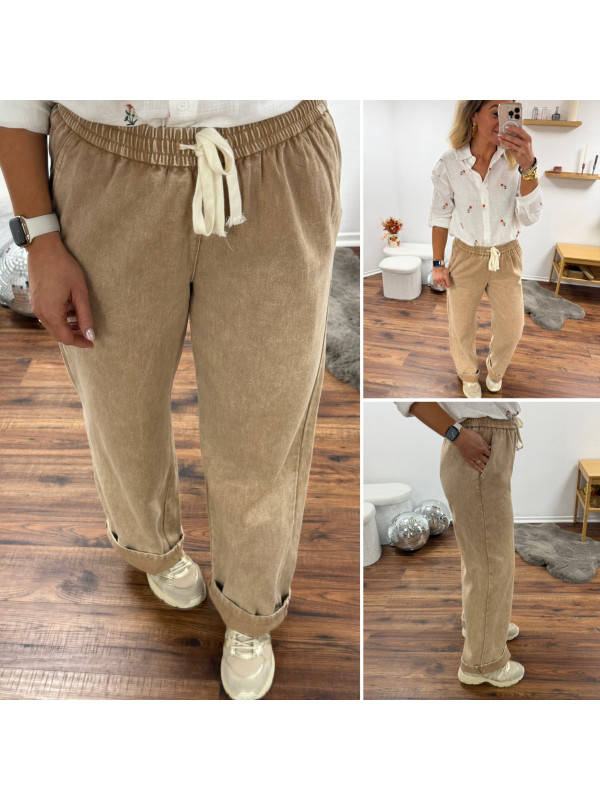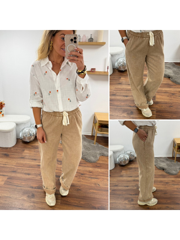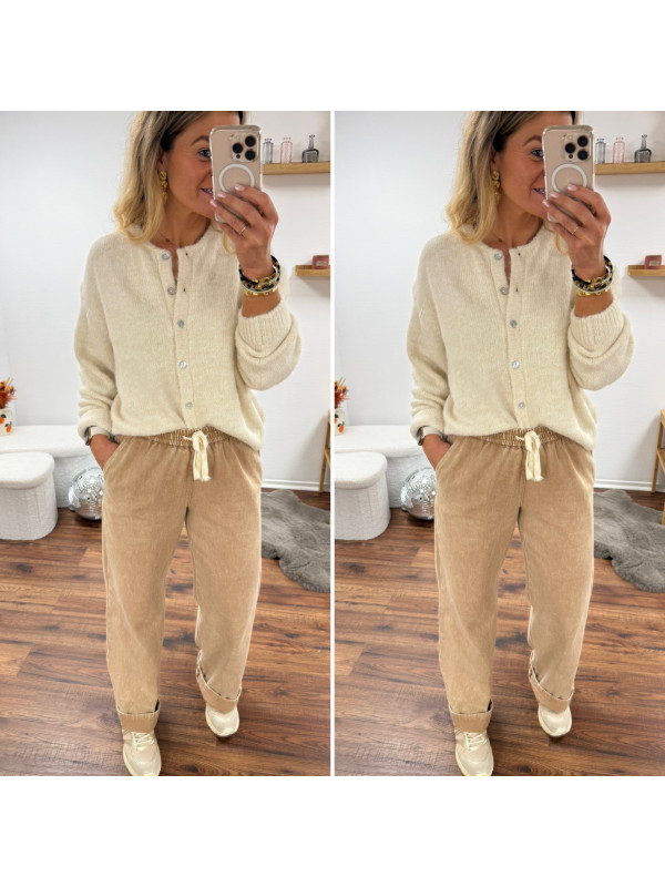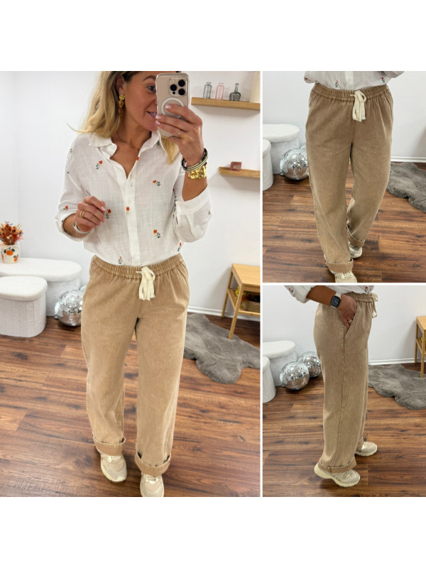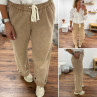 Pantalon en coton camel avec élastique et lien à la taille