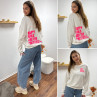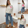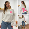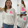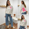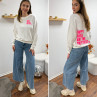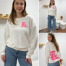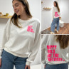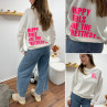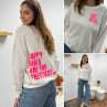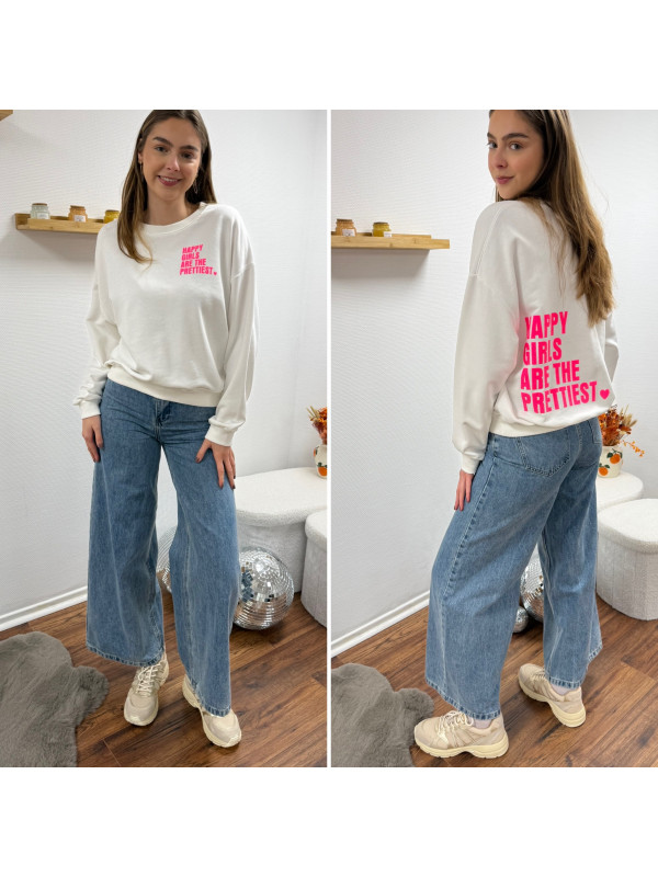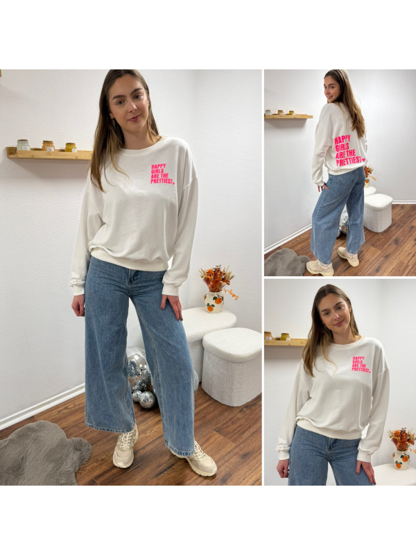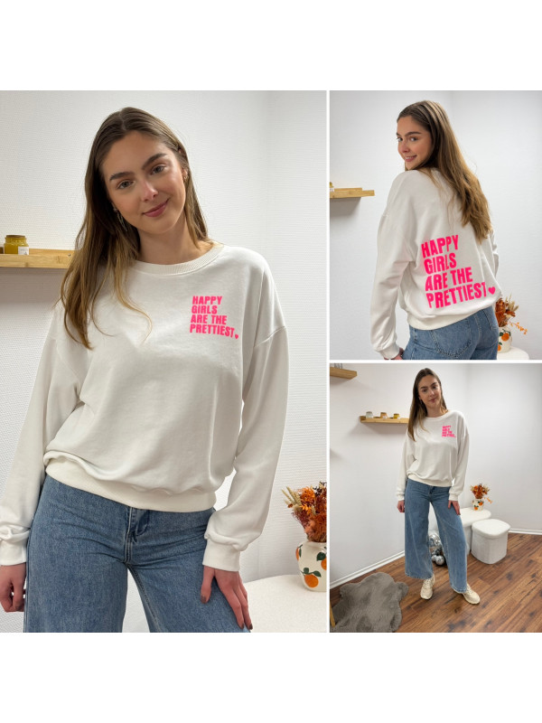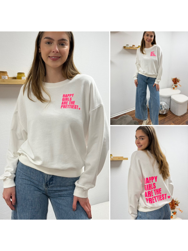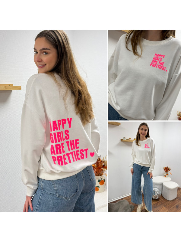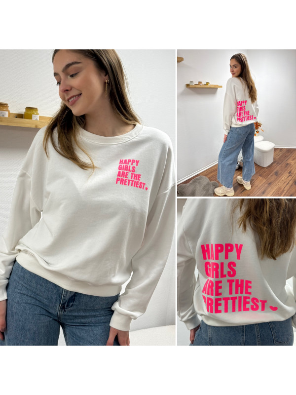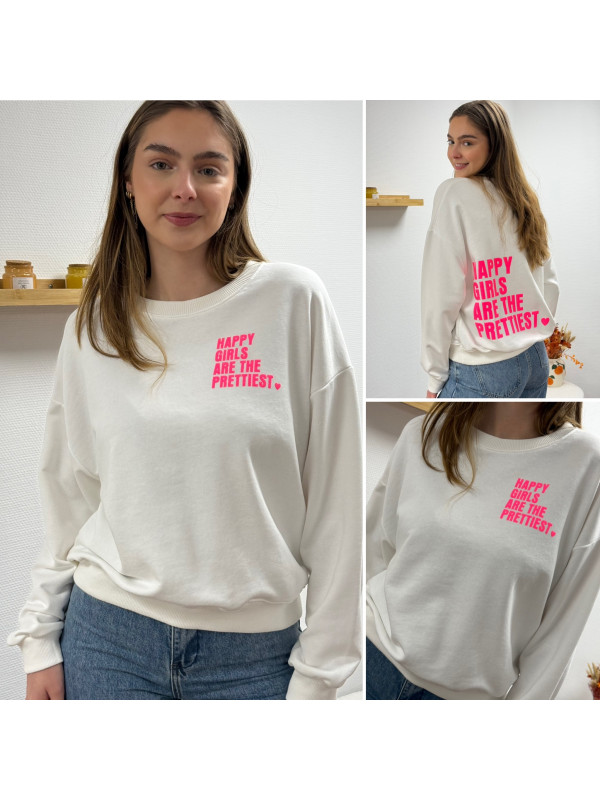 Sweat blanc chiné avec inscription happy girls are the prettiest rose sur la poitrine et dans le dos