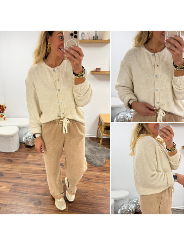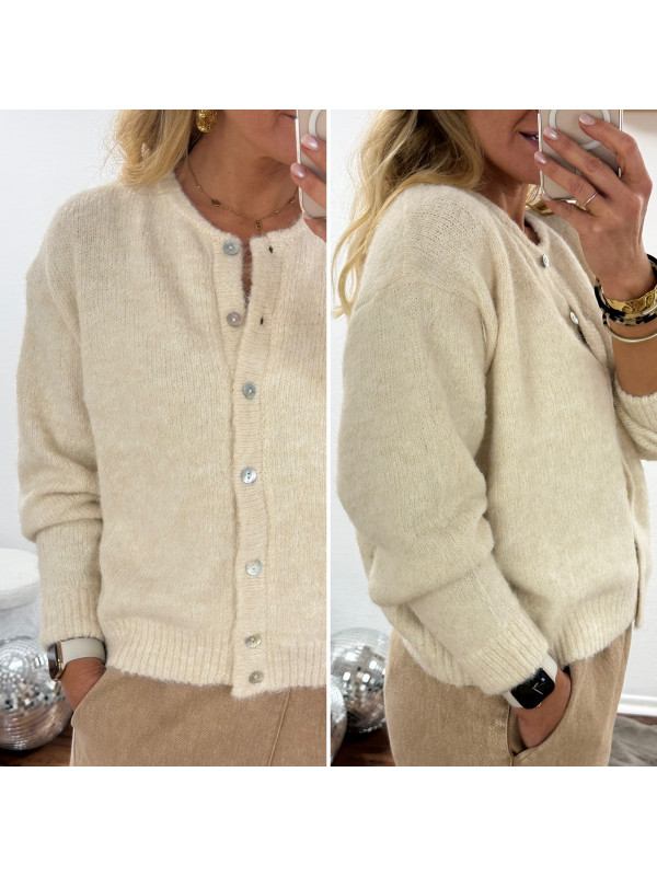 Gilet beige avec boutons nacrés