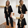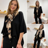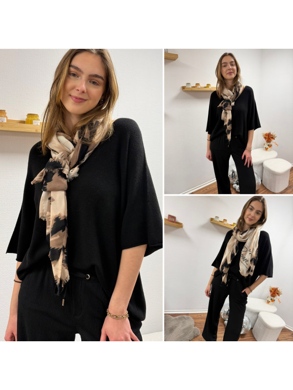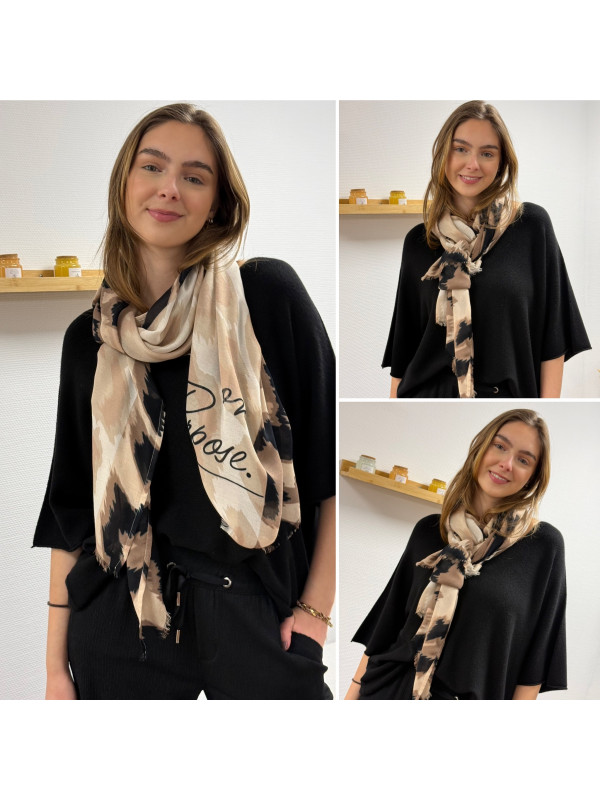 Étole légère camel et noire avec tâches léopard