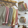 Tee-shirt manches longues col V marinière jaune et écru Cet...