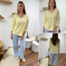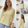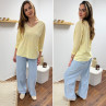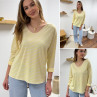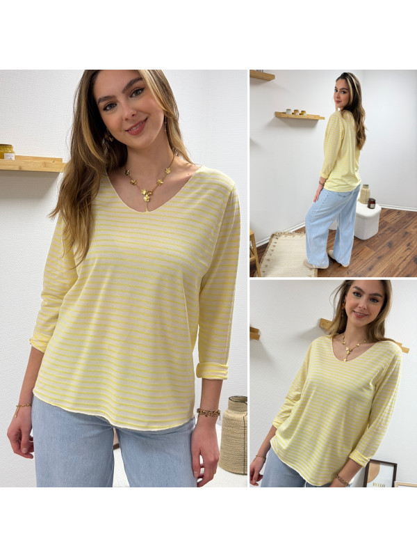 Tee-shirt manches longues col V marinière jaune et écru