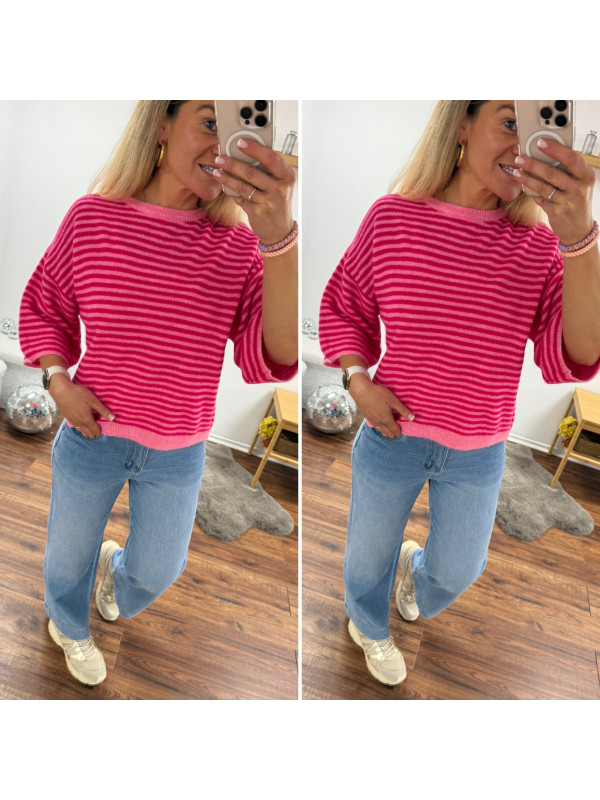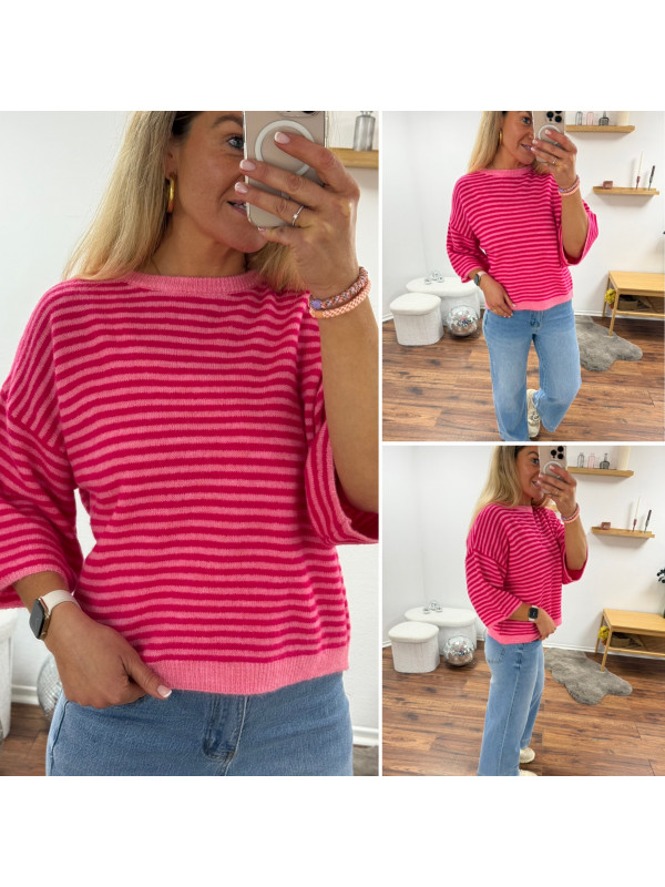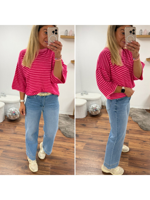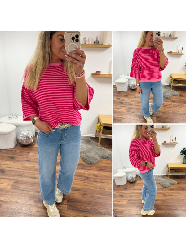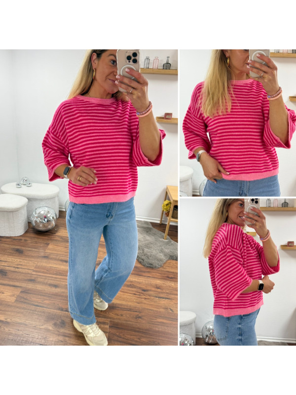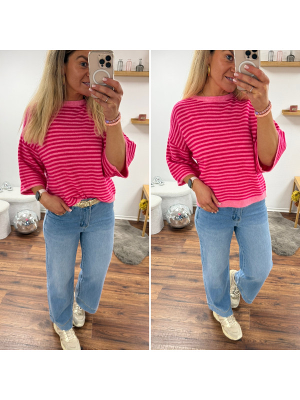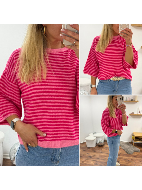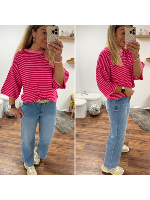 Pull manches courtes rayé rose clair et fuchsia