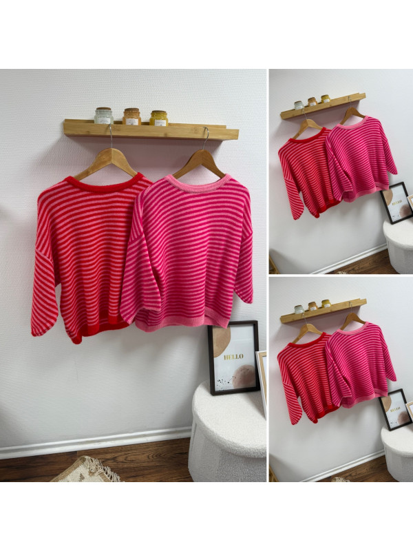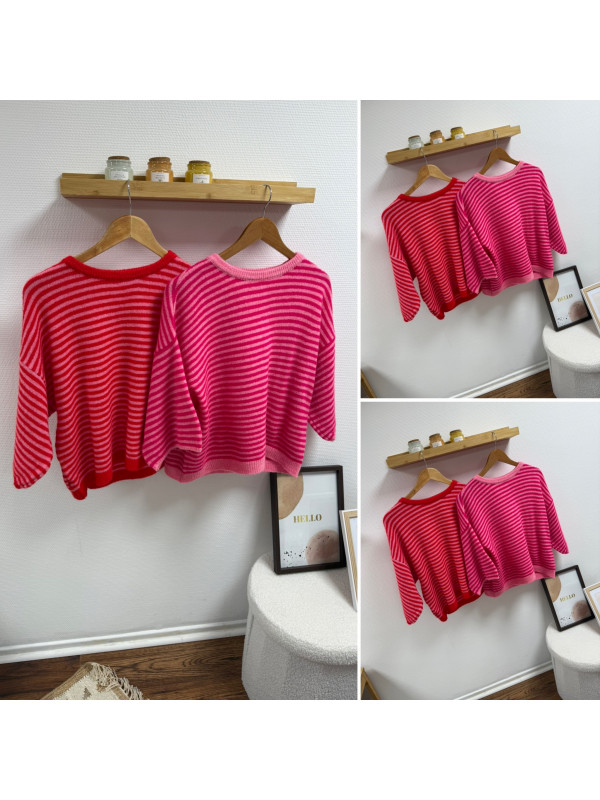 Pull manches courtes rayé rose et rouge Cet article en TU...