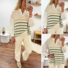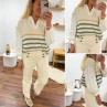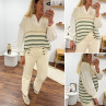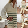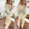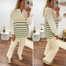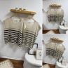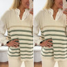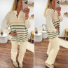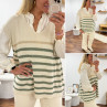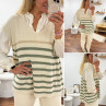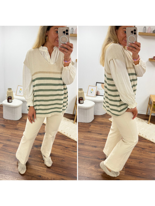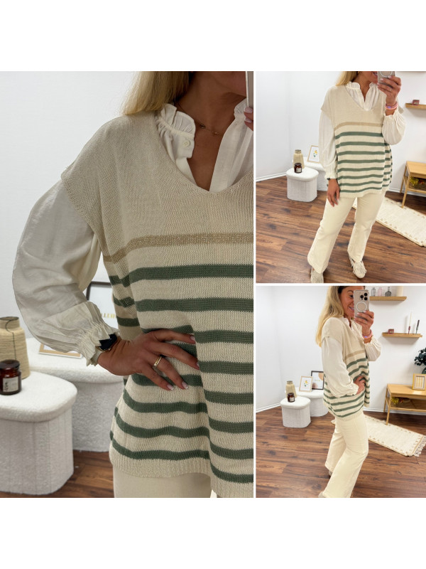 Pull sans manches léger oversize beige sable rayé doré et kaki