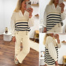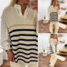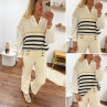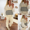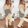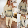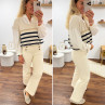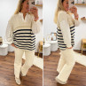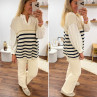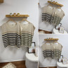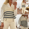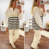 Pull sans manches léger oversize beige sable rayé doré et bleu marine