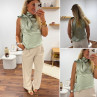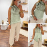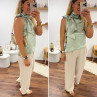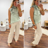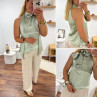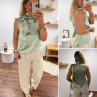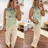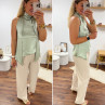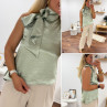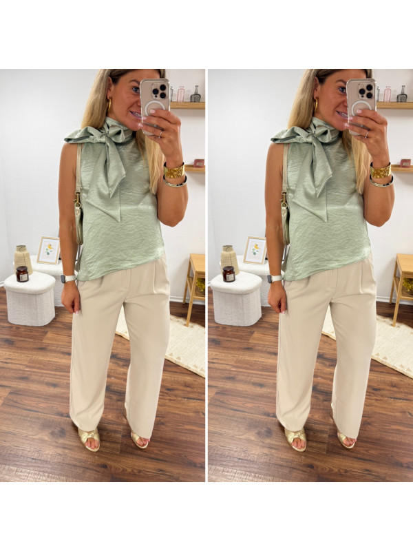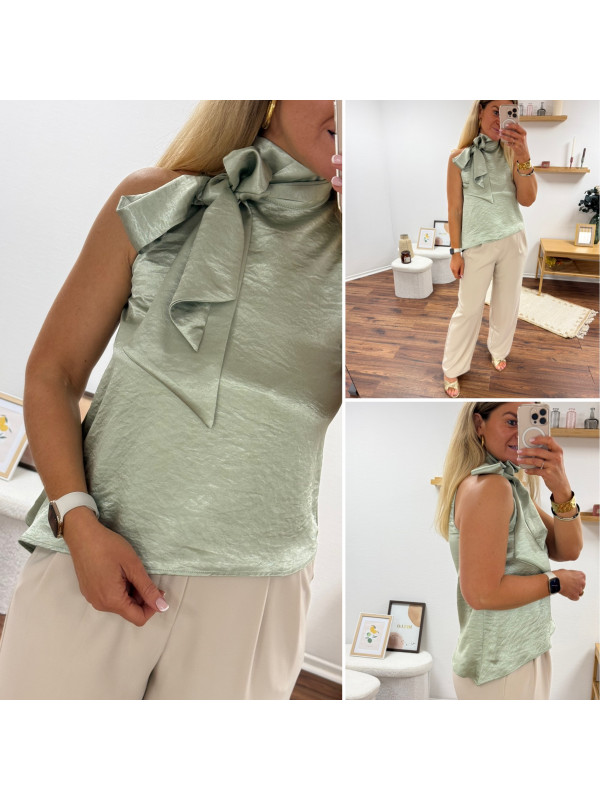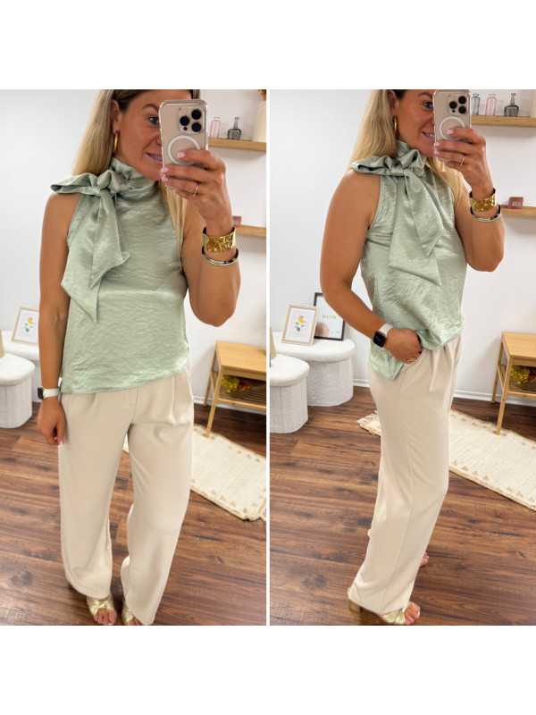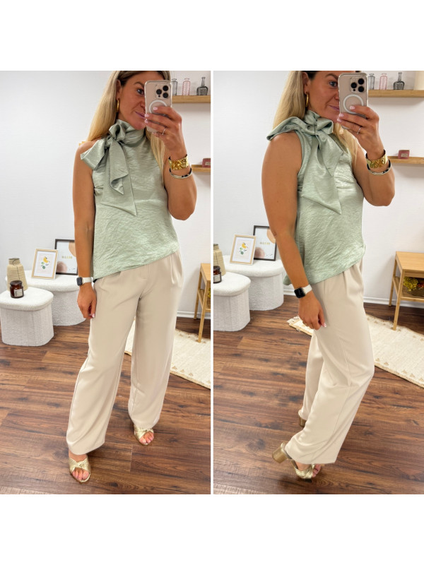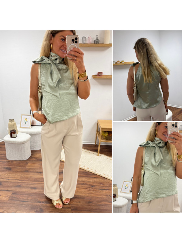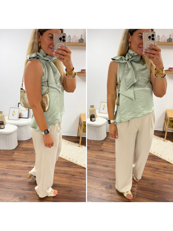Top satiné vert d'eau avec lien à nouer au col