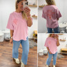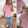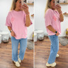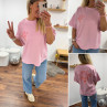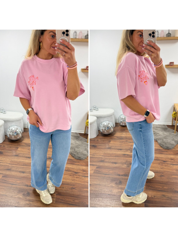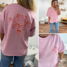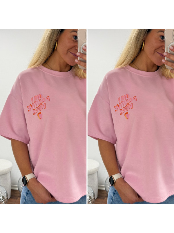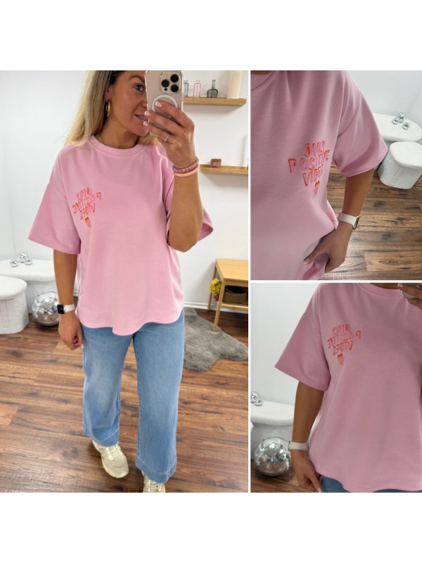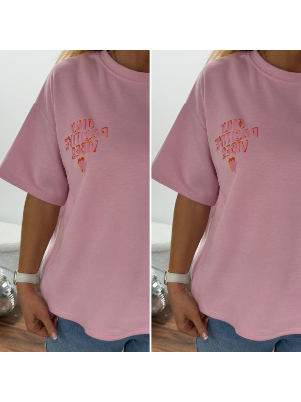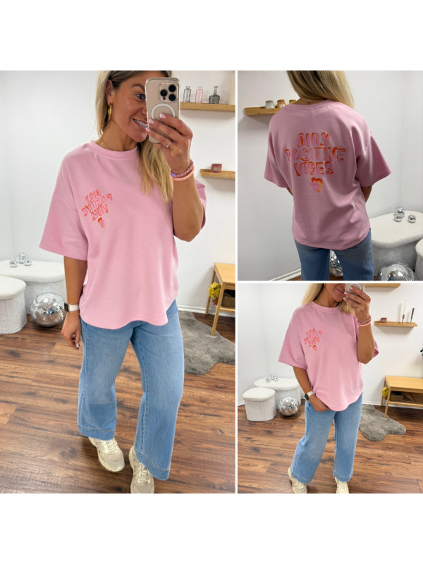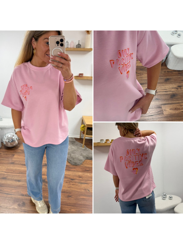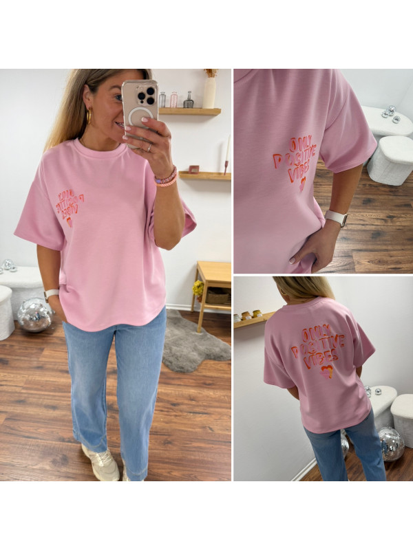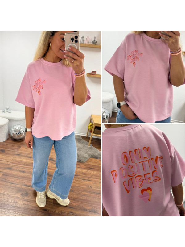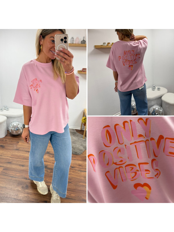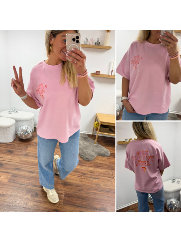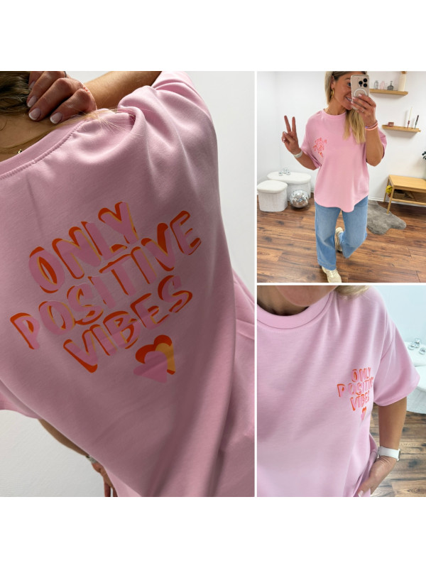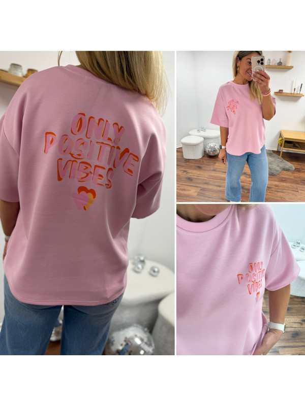 Tee shirt façon sweat fin rose avec écriture "only positive vibes"