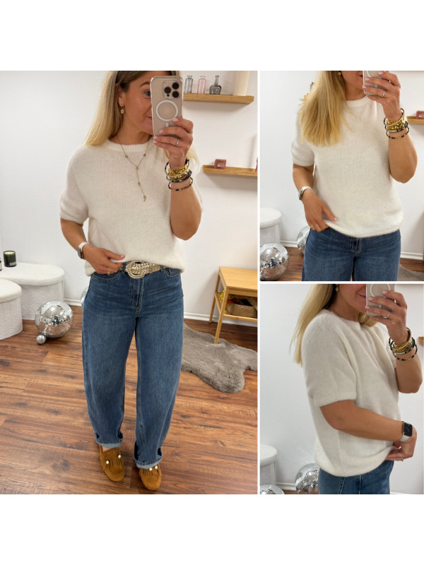 Pull à manches courtes en alpaga bleu marine Cet article en...